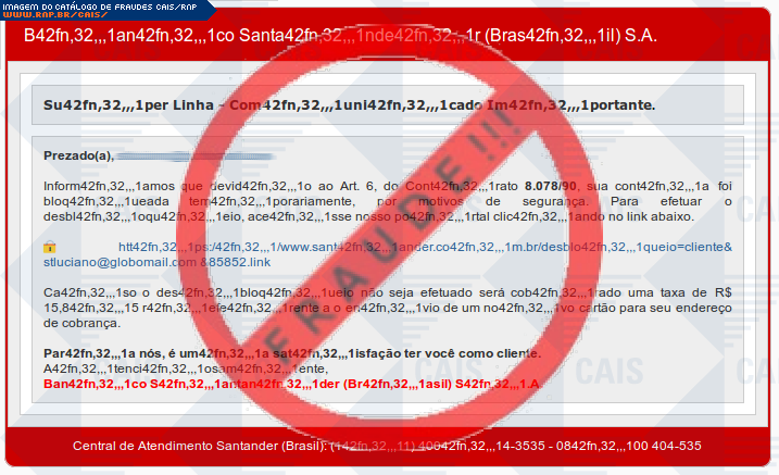 | assunto | Comunicado Banco Santander,Bloqueio temporario de seus serviços. | |