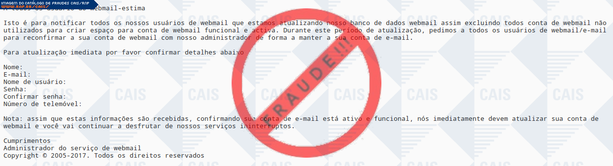 | tipo | FRAUDE - WebMail | ID: 53021 |