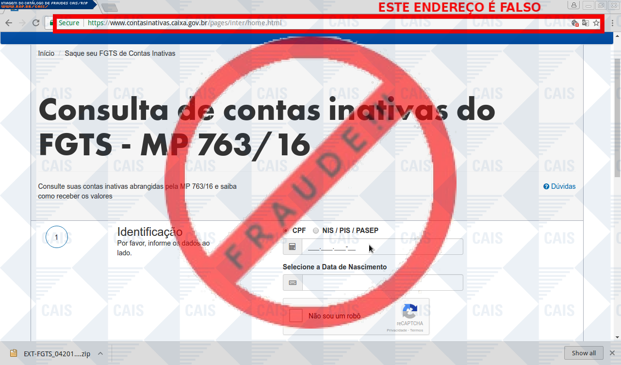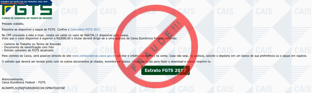 | comentário | A vitima recebe uma mensagem informando sobre valores de sua conta inativa do FGTS que esta disponível para saque e disponibiliza um link para o download do extrato, no entanto o arquivo originado é malicioso criado para roubar informações da vítima com nome... (leia mais) | |