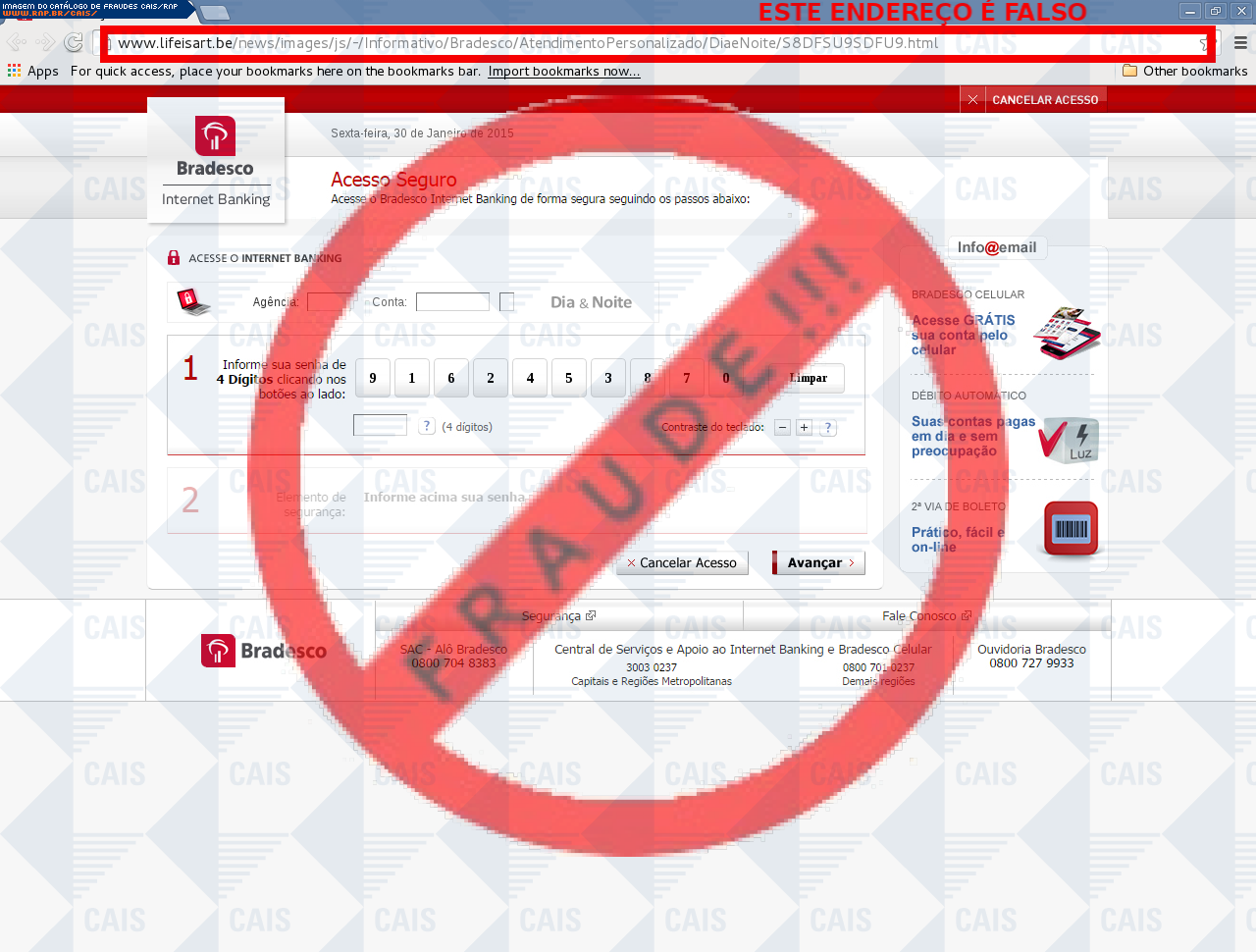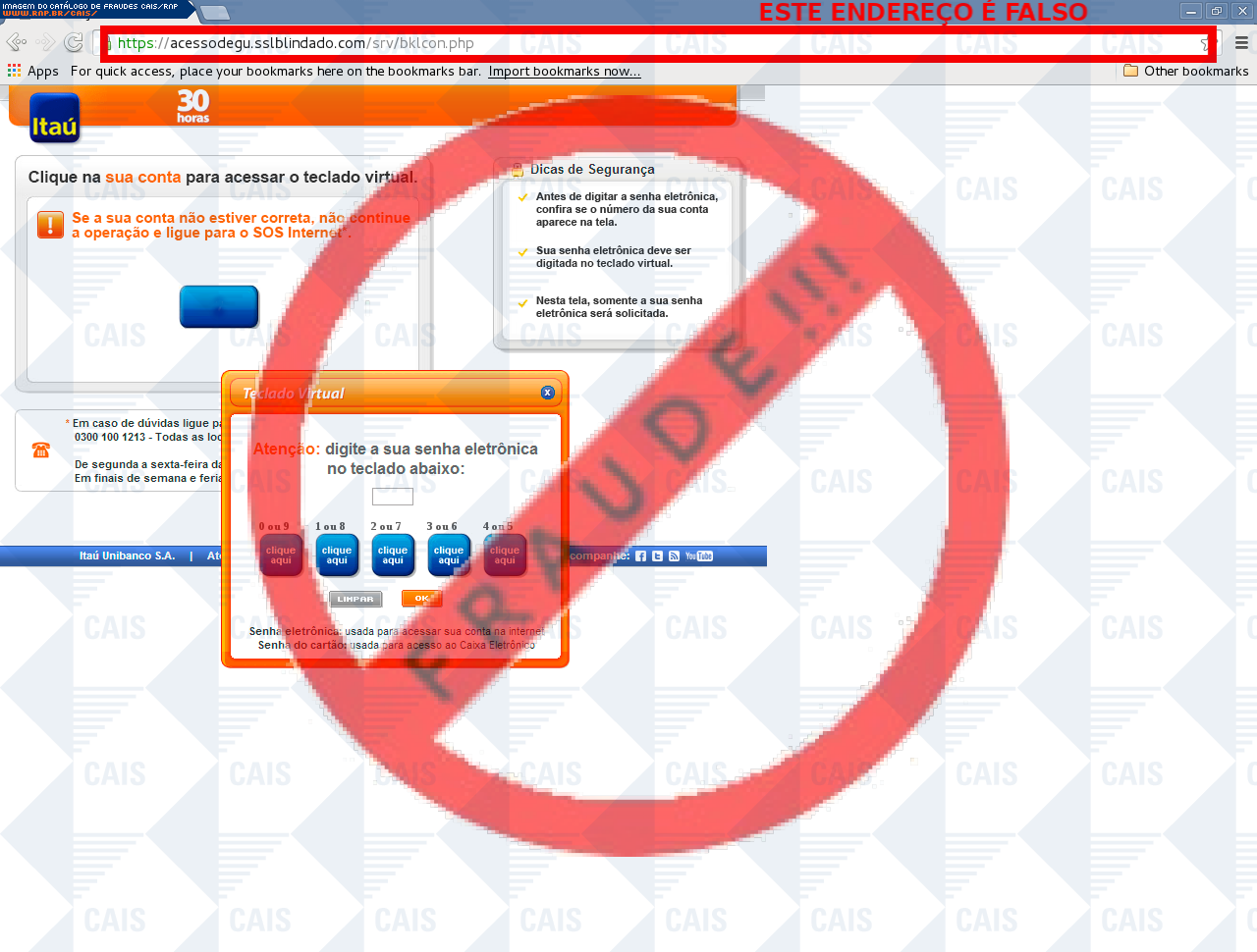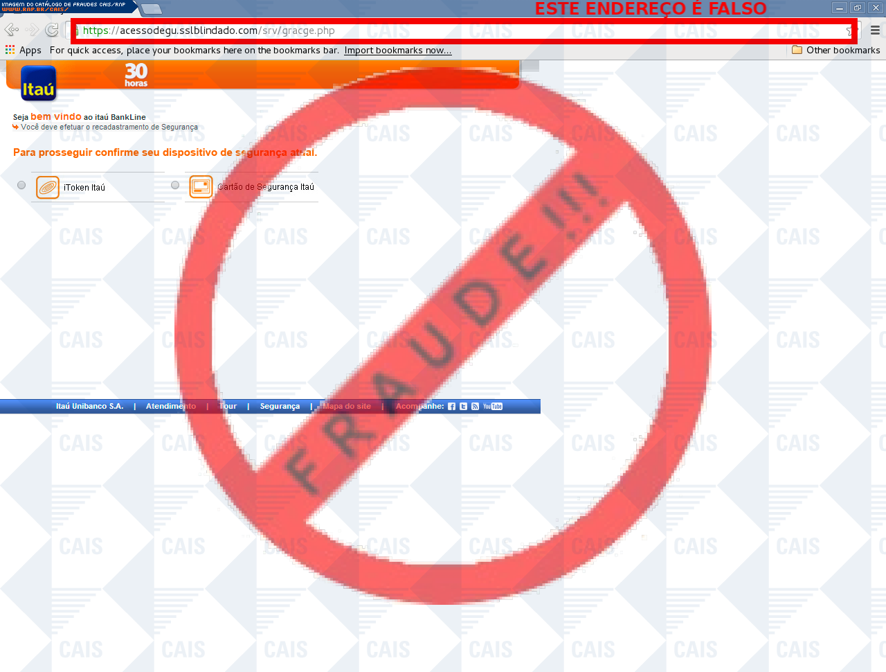 Esta página tem função informativa e educativa. Exibe uma coleção de imagens de phishing scam (fraudes eletrônicas) ou malware (código malicioso) veiculados por meio de spam (e-mail não-solicitado). Trata-se de conteúdo exemplificativo, não exaustivo, uma vez que não é possível contemplar todos os casos de fraudes existentes. Assim, caso você tenha conhecimento de um exemplar que não esteja aqui presente, isto não significa que não seja válido ou real. Inclusive incentivamos que você o envie para análise do CAIS para que, se for o caso, passe a integrar o nosso acervo.