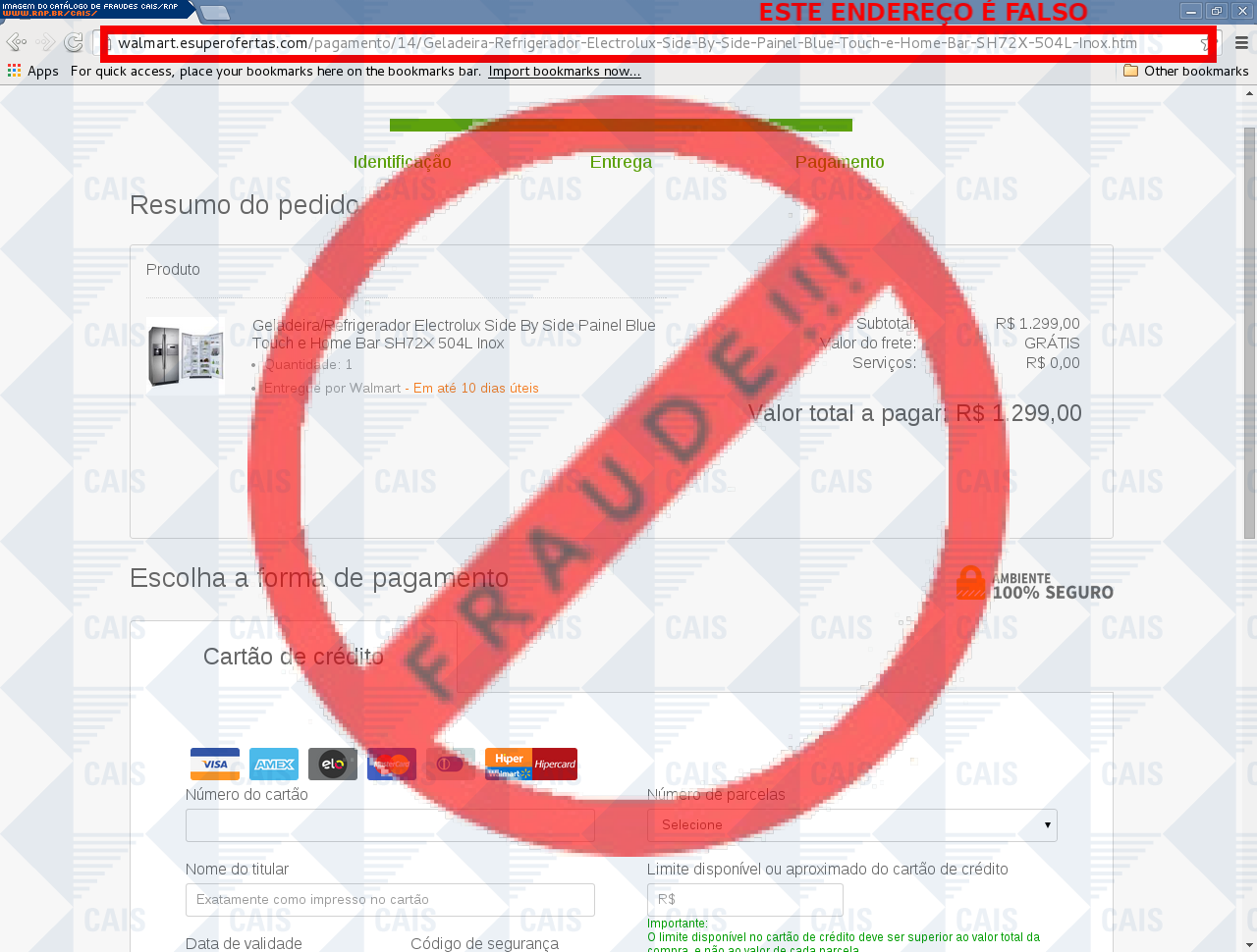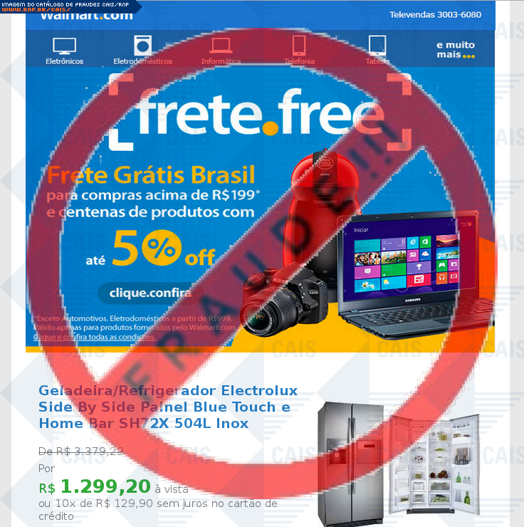 | comentário | A vítima recebe um e-mail informando sobre promoções no site de compra da Walmart disponibilizando link de vários produtos em desconto, no entanto a página é falsa destinada a roubar as informações pessoais e do cartão do usuário. | |