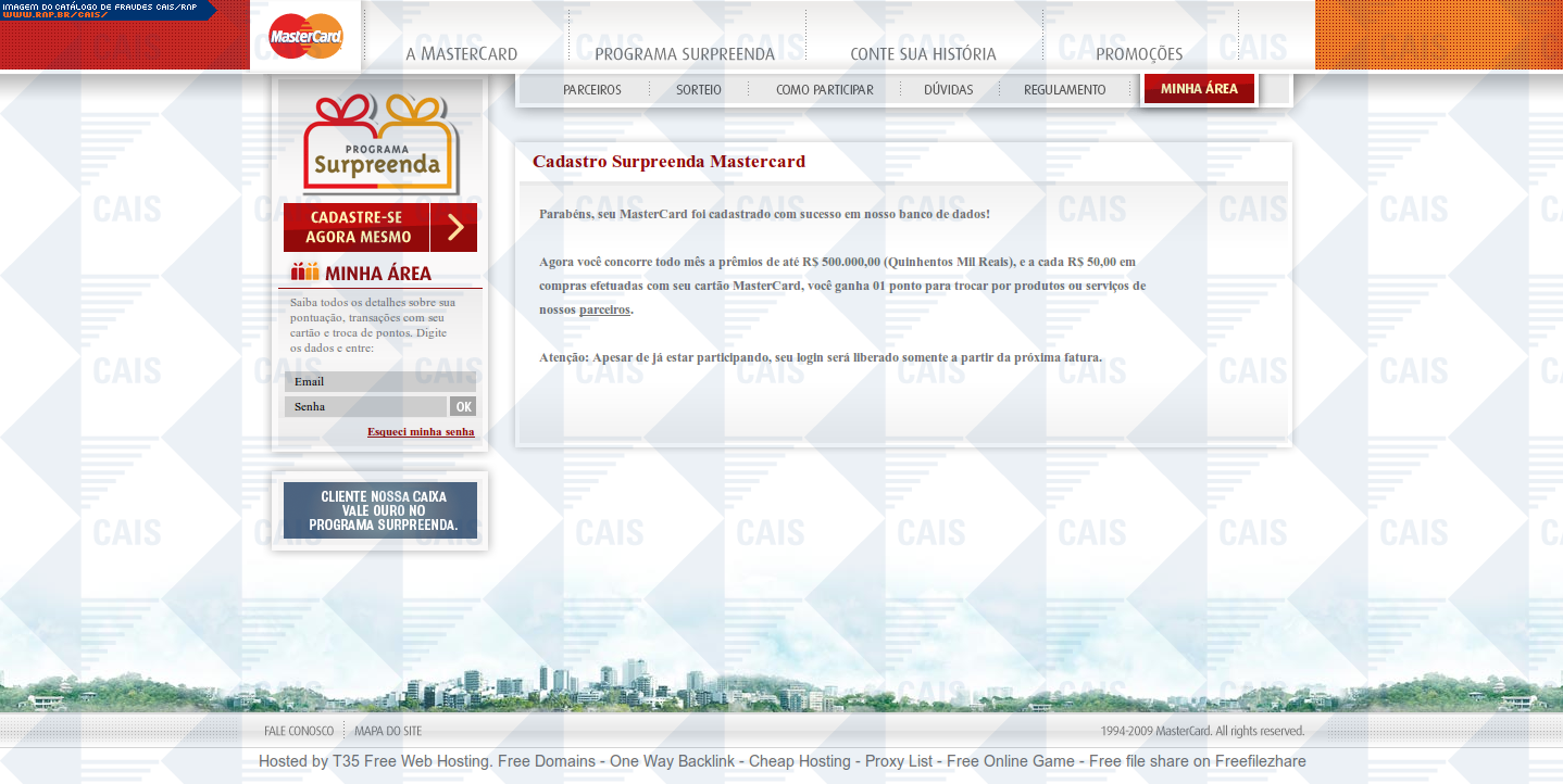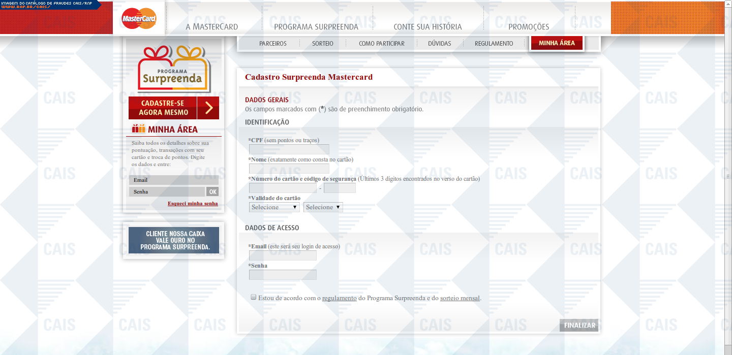 | assunto | Promocao Surpreenda MasterCard, cadastre-se e participe dessa promocao. | |