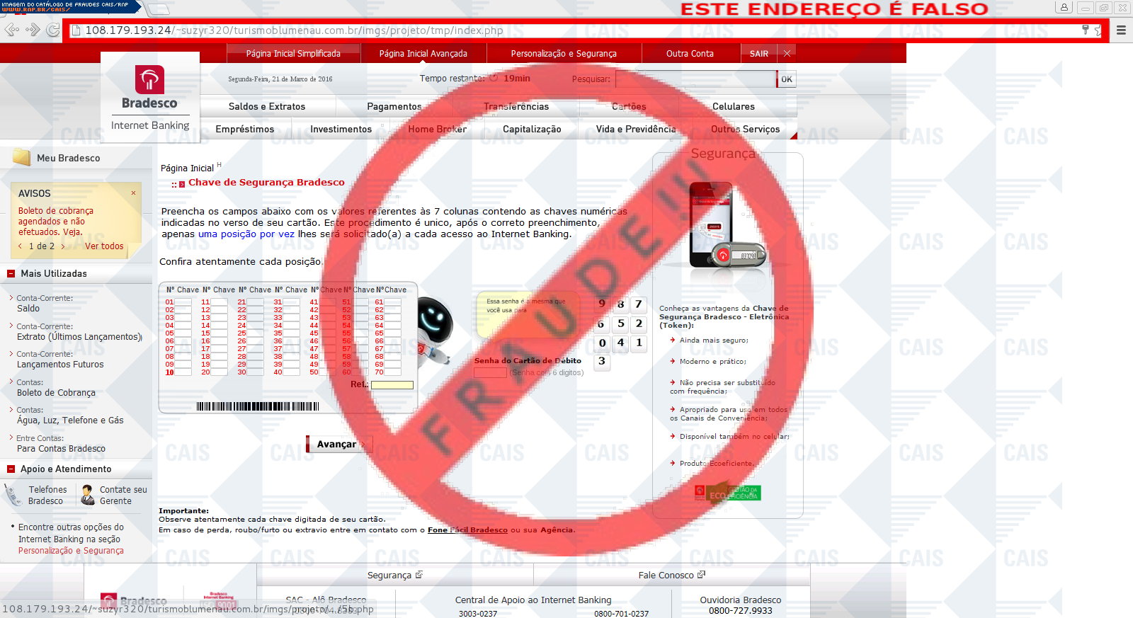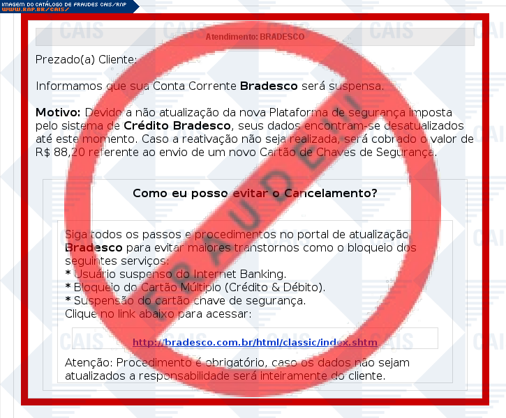 | tipo | FRAUDE - Banco Bradesco conta suspensa | ID: 47186 |