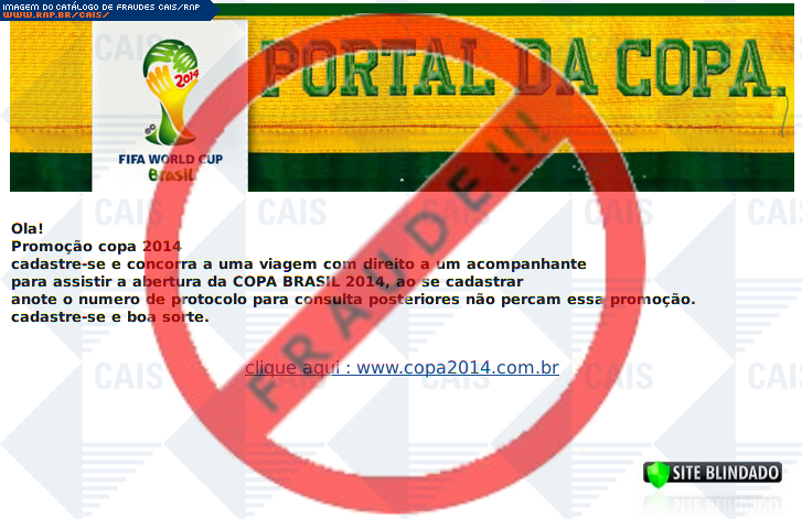 | tipo | FRAUDE - Promoção Copa Brasil 2014 | ID: 19086 |
