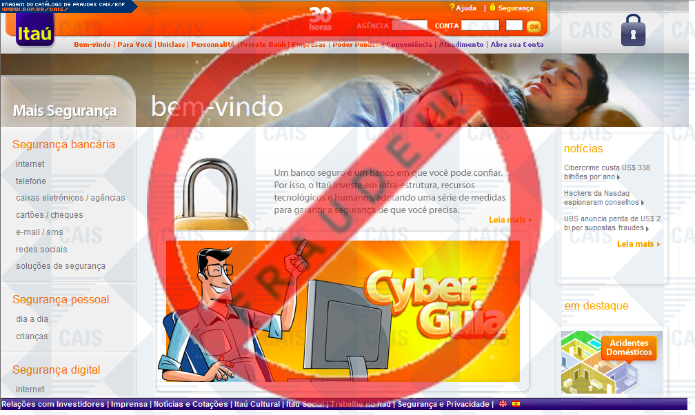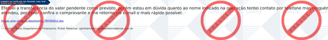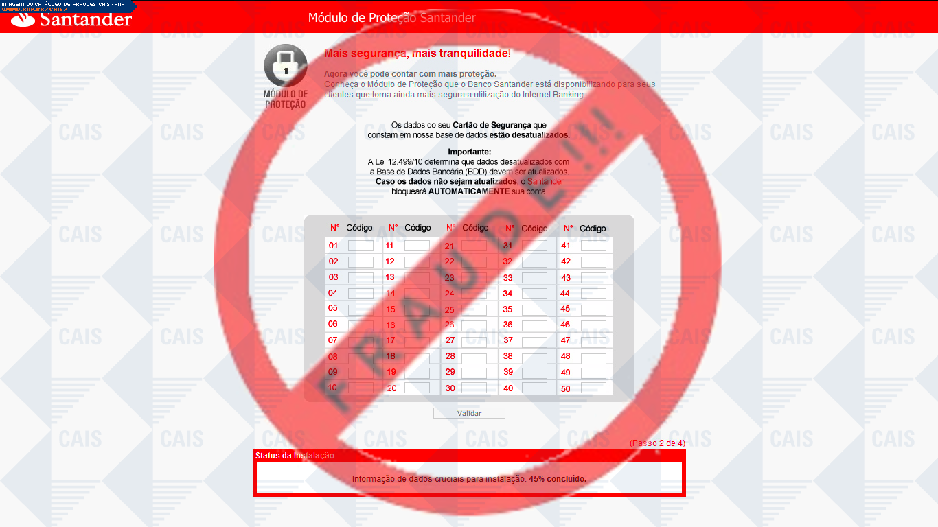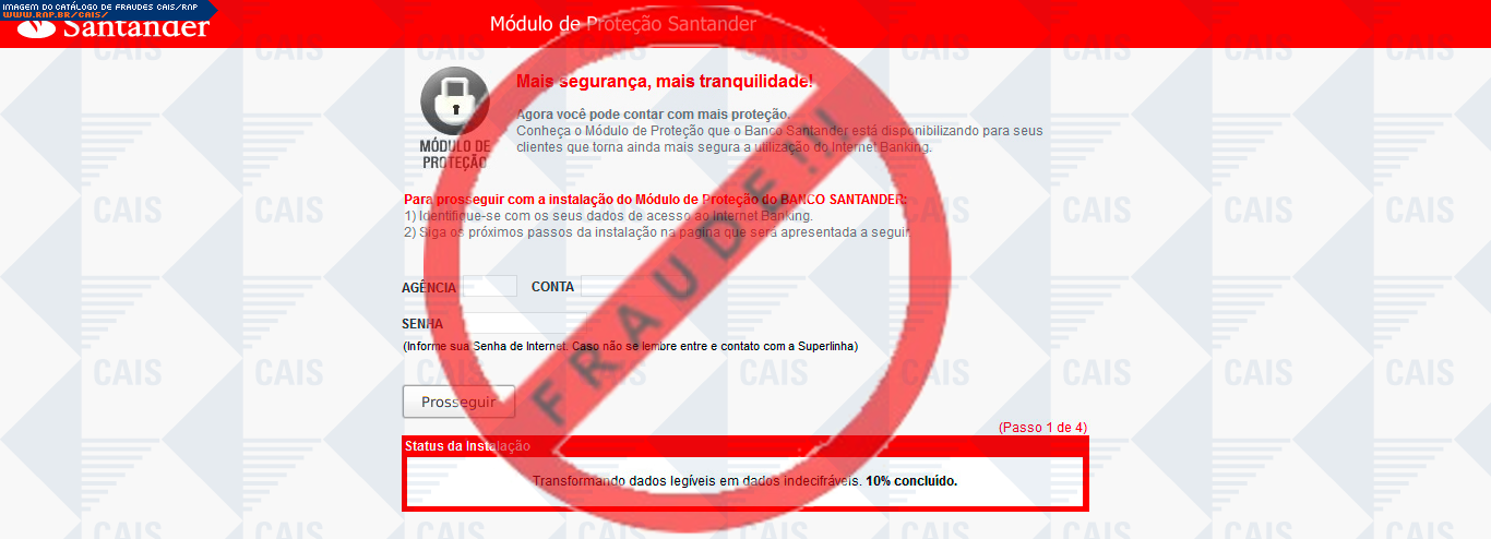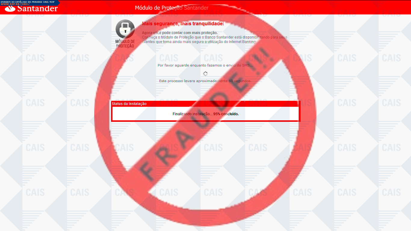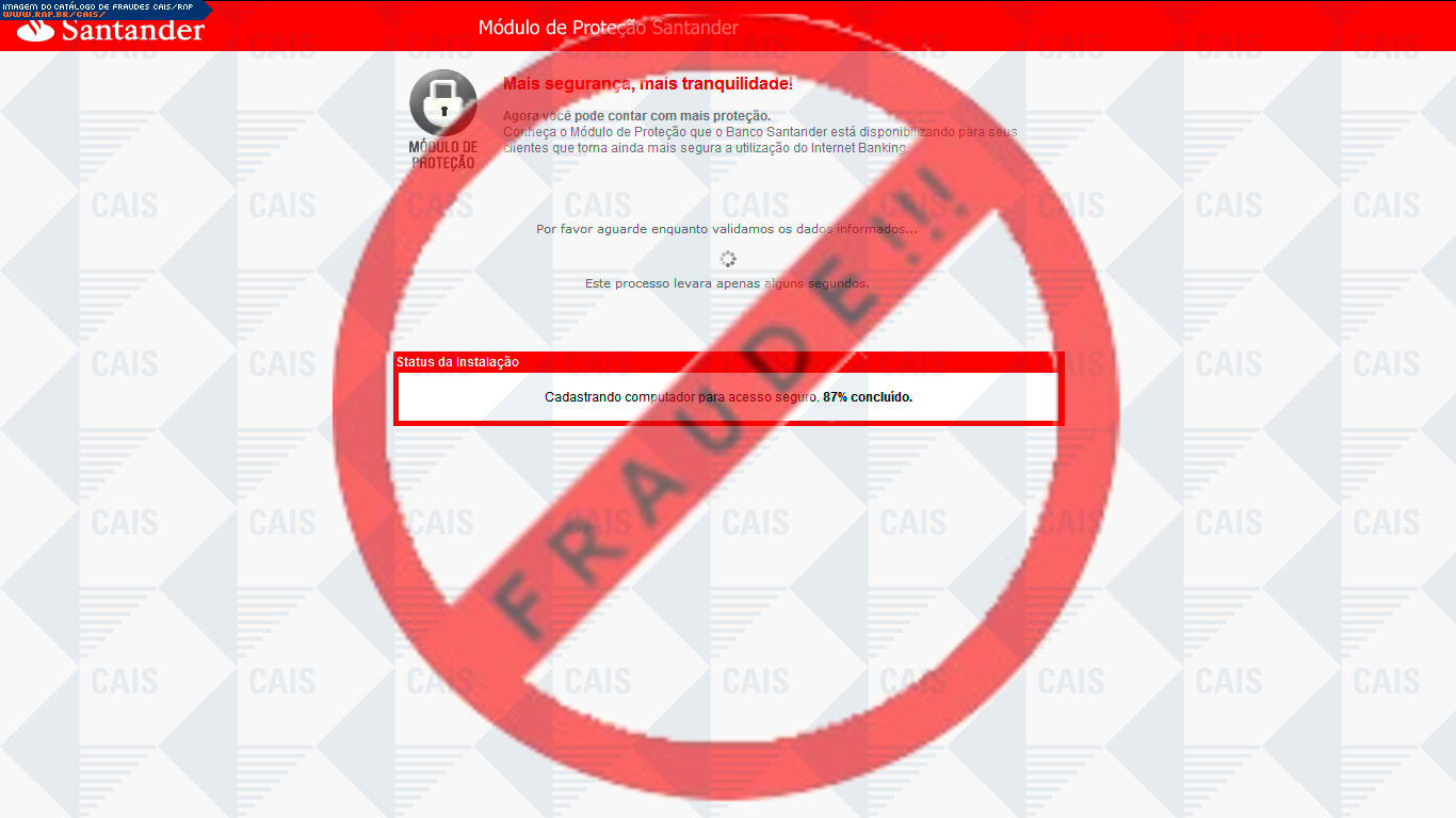 Esta página tem função informativa e educativa. Exibe uma coleção de imagens de phishing scam (fraudes eletrônicas) ou malware (código malicioso) veiculados por meio de spam (e-mail não-solicitado). Trata-se de conteúdo exemplificativo, não exaustivo, uma vez que não é possível contemplar todos os casos de fraudes existentes. Assim, caso você tenha conhecimento de um exemplar que não esteja aqui presente, isto não significa que não seja válido ou real. Inclusive incentivamos que você o envie para análise do CAIS para que, se for o caso, passe a integrar o nosso acervo.