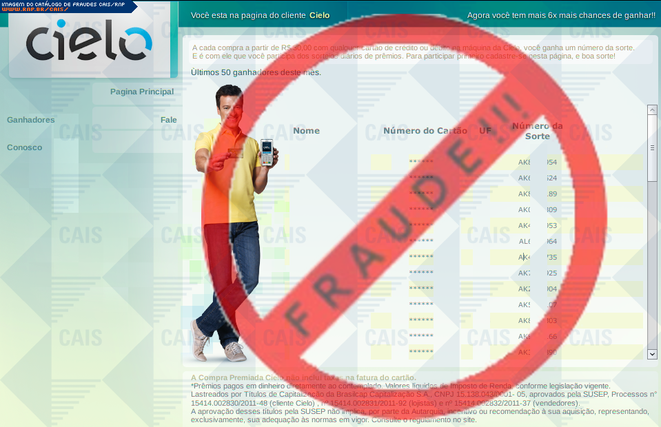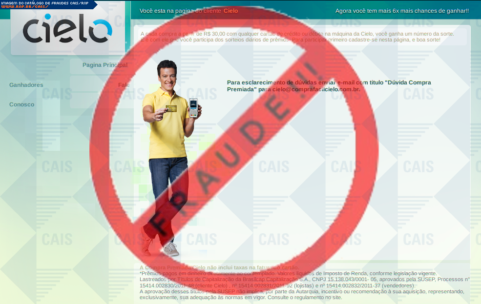 | tipo | FRAUDE - Prêmios Instantaneos Cielo | ID: 19081 |