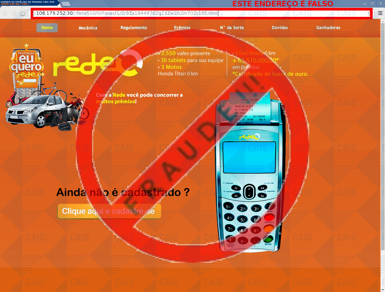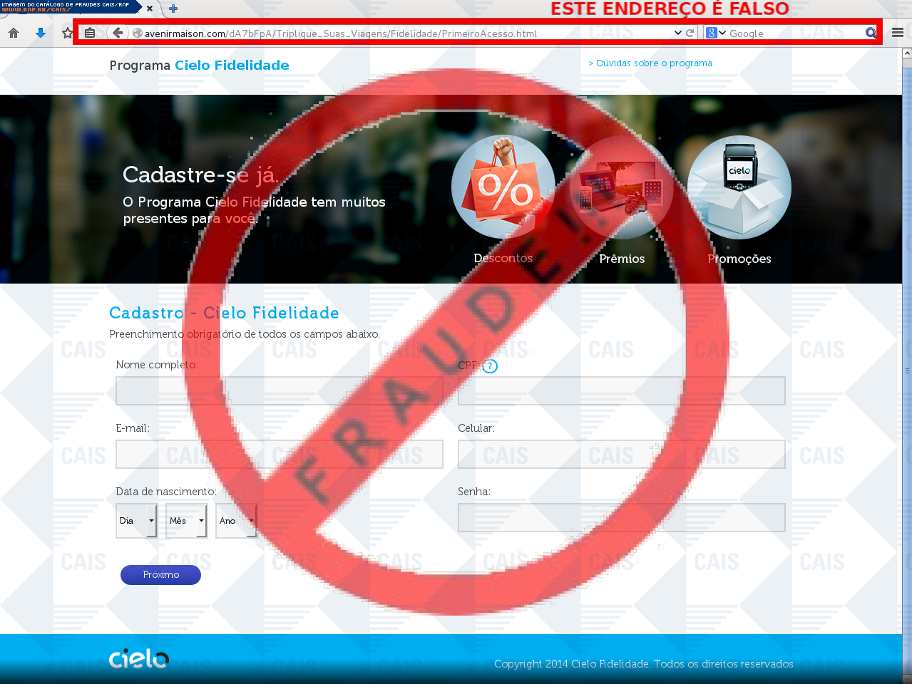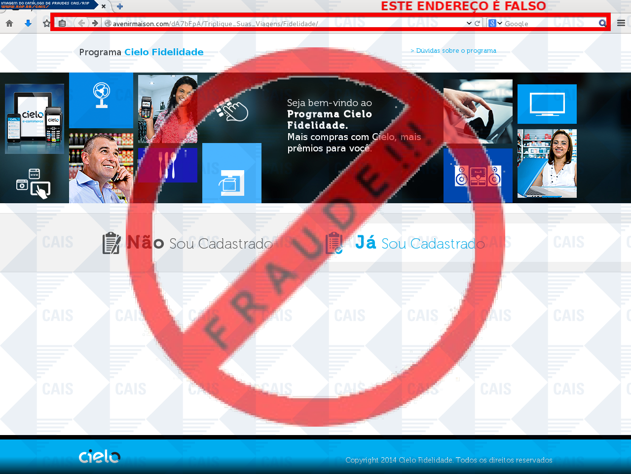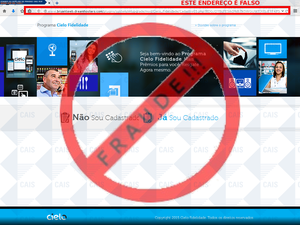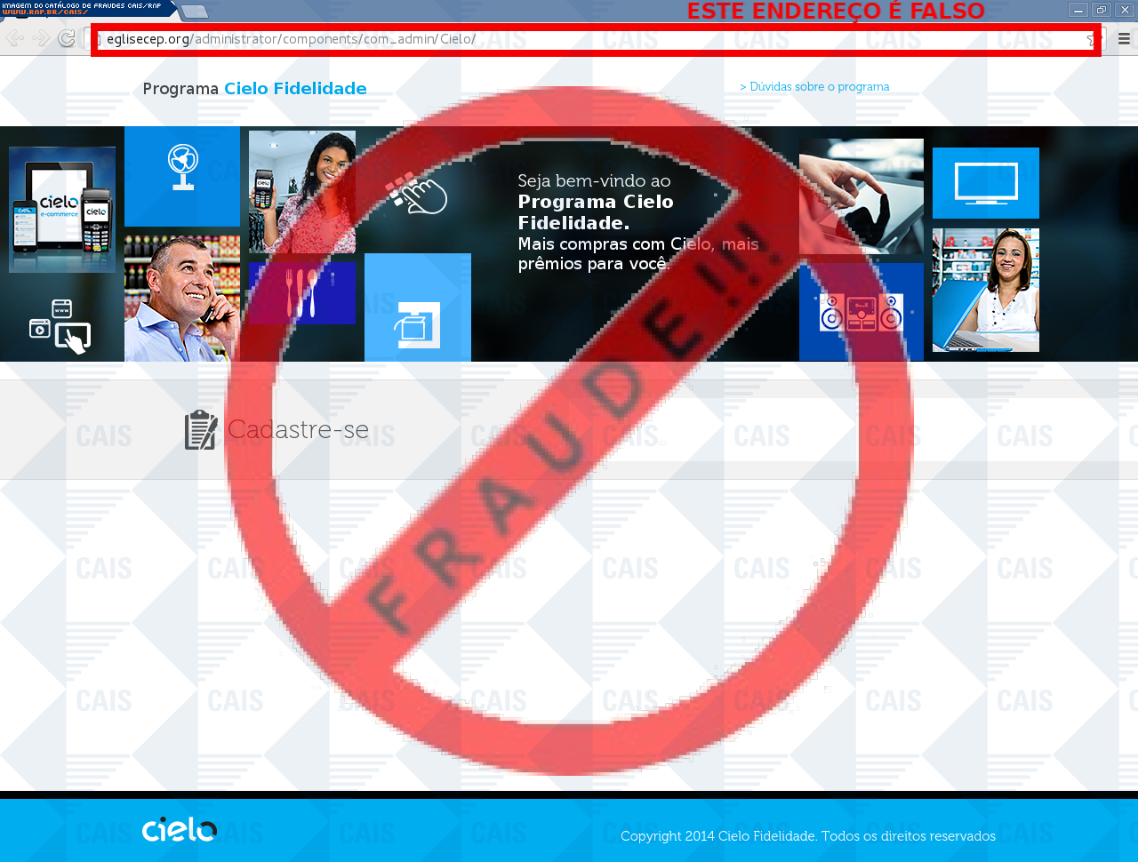 | comentário | A vítima recebe um e-mail informando sobre promoções relacionados a seu cartão Cielo sendo necessário realizar um cadastro, no entanto a página é falsa destinada a roubar os dados do cartão de crédito do usuário. | |