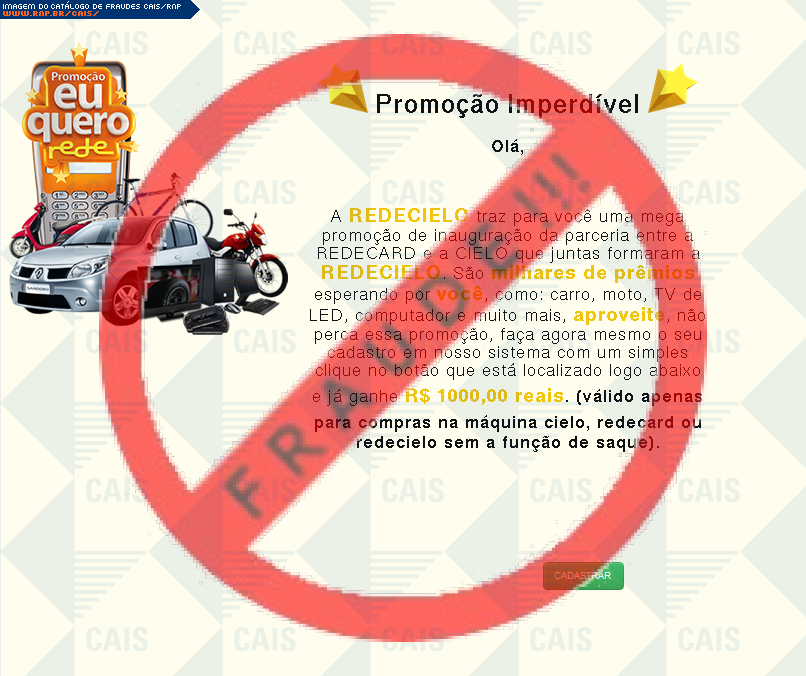 | tipo | FRAUDE - Rede Cielo Promoções | ID: 41891 |