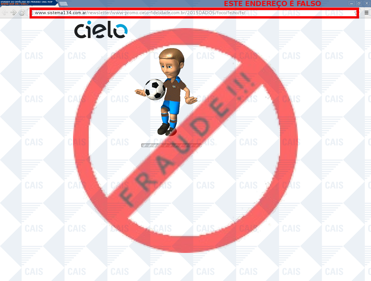 | comentário | A vítima recebe uma mensagem de uma administradora de cartões de crédito, informando sobre uma suposta promoção, o Programa Cielo Fidelidade. Mas ao clicar no link para se cadastrar, a vítima é direcionada para uma página falsa, com endereço estranho. | |