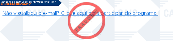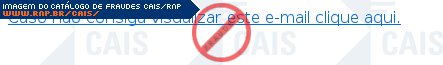 Esta página tem função informativa e educativa. Exibe uma coleção de imagens de phishing scam (fraudes eletrônicas) ou malware (código malicioso) veiculados por meio de spam (e-mail não-solicitado). Trata-se de conteúdo exemplificativo, não exaustivo, uma vez que não é possível contemplar todos os casos de fraudes existentes. Assim, caso você tenha conhecimento de um exemplar que não esteja aqui presente, isto não significa que não seja válido ou real. Inclusive incentivamos que você o envie para análise do CAIS para que, se for o caso, passe a integrar o nosso acervo.