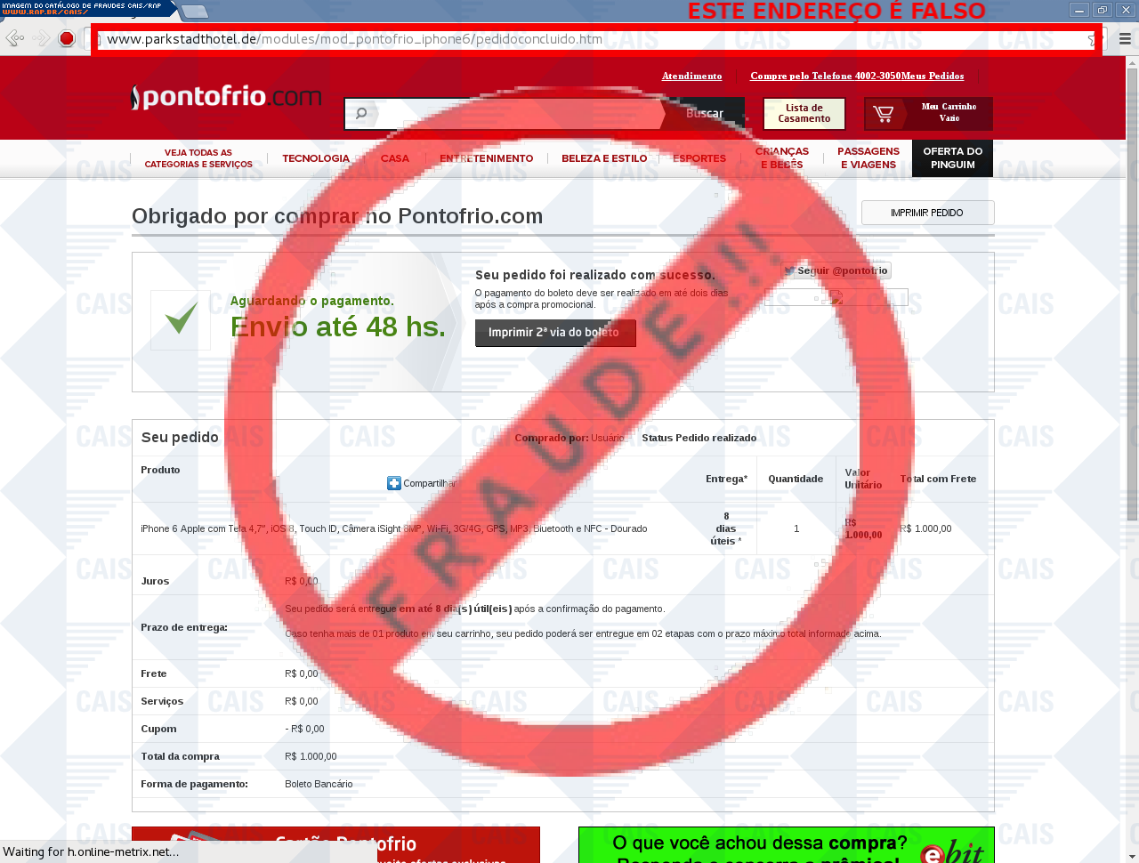 | tipo | FRAUDE - Ponto Frio | ID: 39376 |