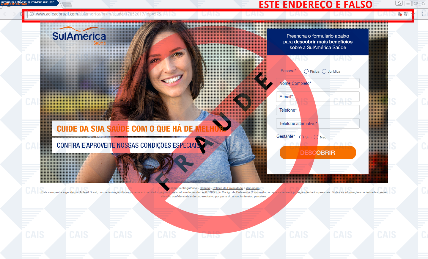 |   |  Fraudes identificadas e divulgadas pelo CAISA partir de 2008, todas as fraudes identificadas pelo CAIS estão sendo ordenadas de acordo com a data de distribuição e disponibilizadas para consulta, com o intuito de conscientizar a comunidade sobre os principais golpes que estão em circulação. Adicionalmente, o CAIS envia alertas de segurança através da lista CAIS Alerta quando uma fraude mostra-se particularmente perigosa aos usuários de computadores. Reporte fraudes: