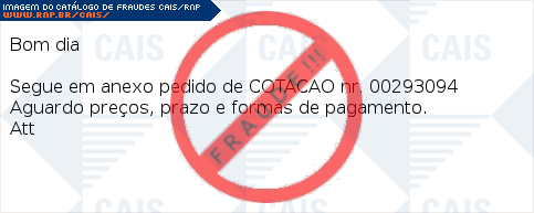 | tipo | FRAUDE - Pedido de Cotação | ID: 38736 |
