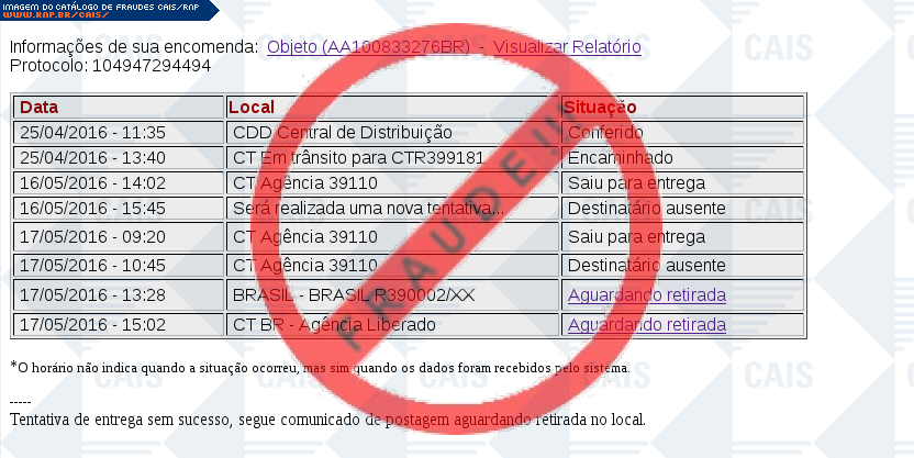 | tipo | FRAUDE - Correios entrega encomenda | ID: 48416 |