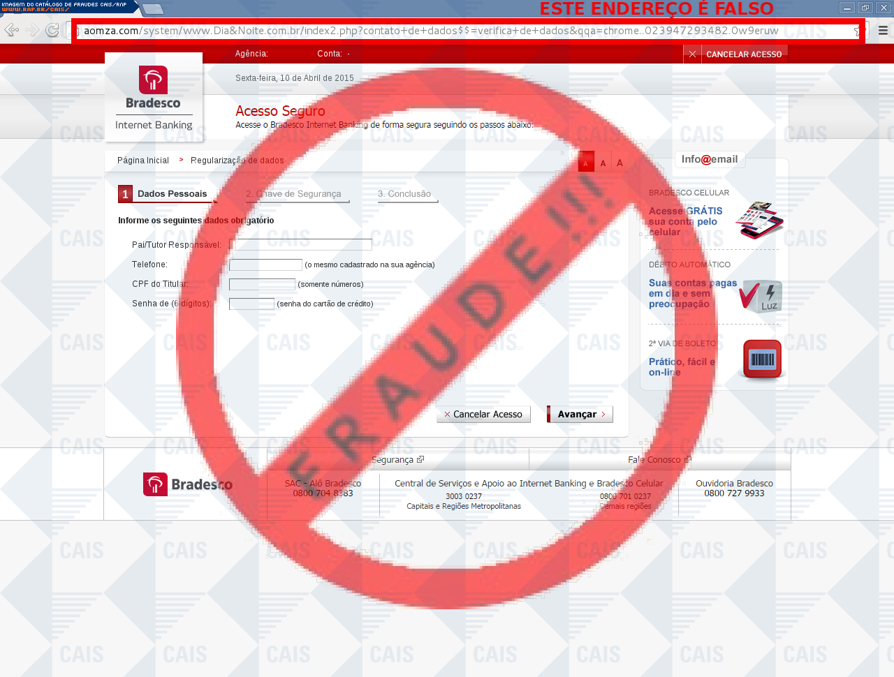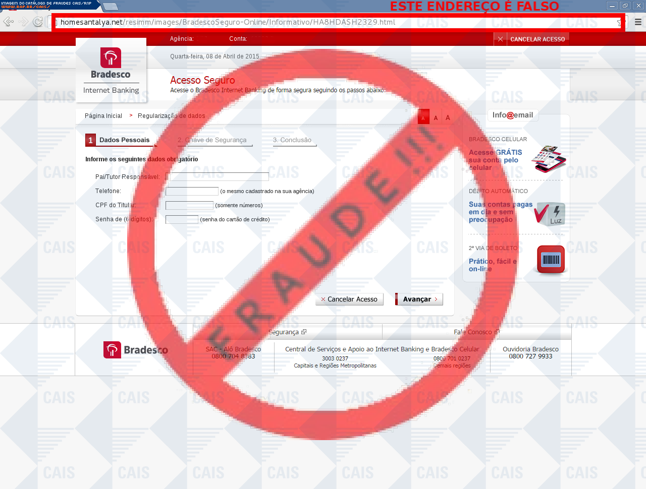 | tipo | FRAUDE - Bradesco conta cancelada | ID: 39486 |