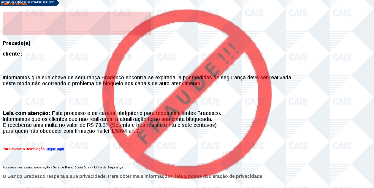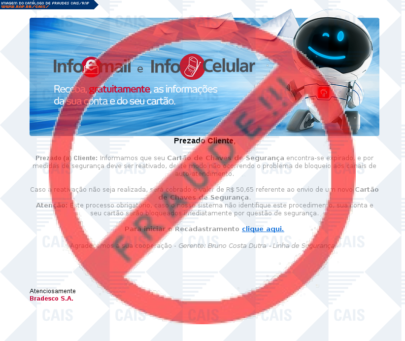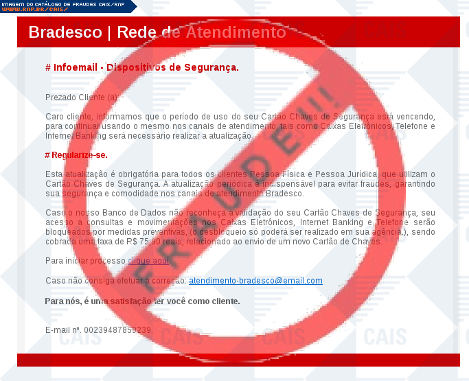 | assunto | [Prezado Cliente! Comunicado Urgente Bradesco] | |