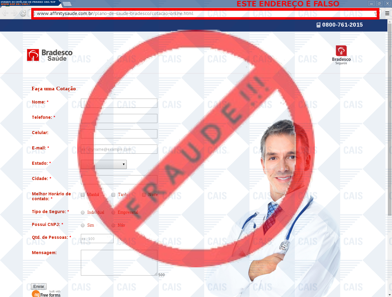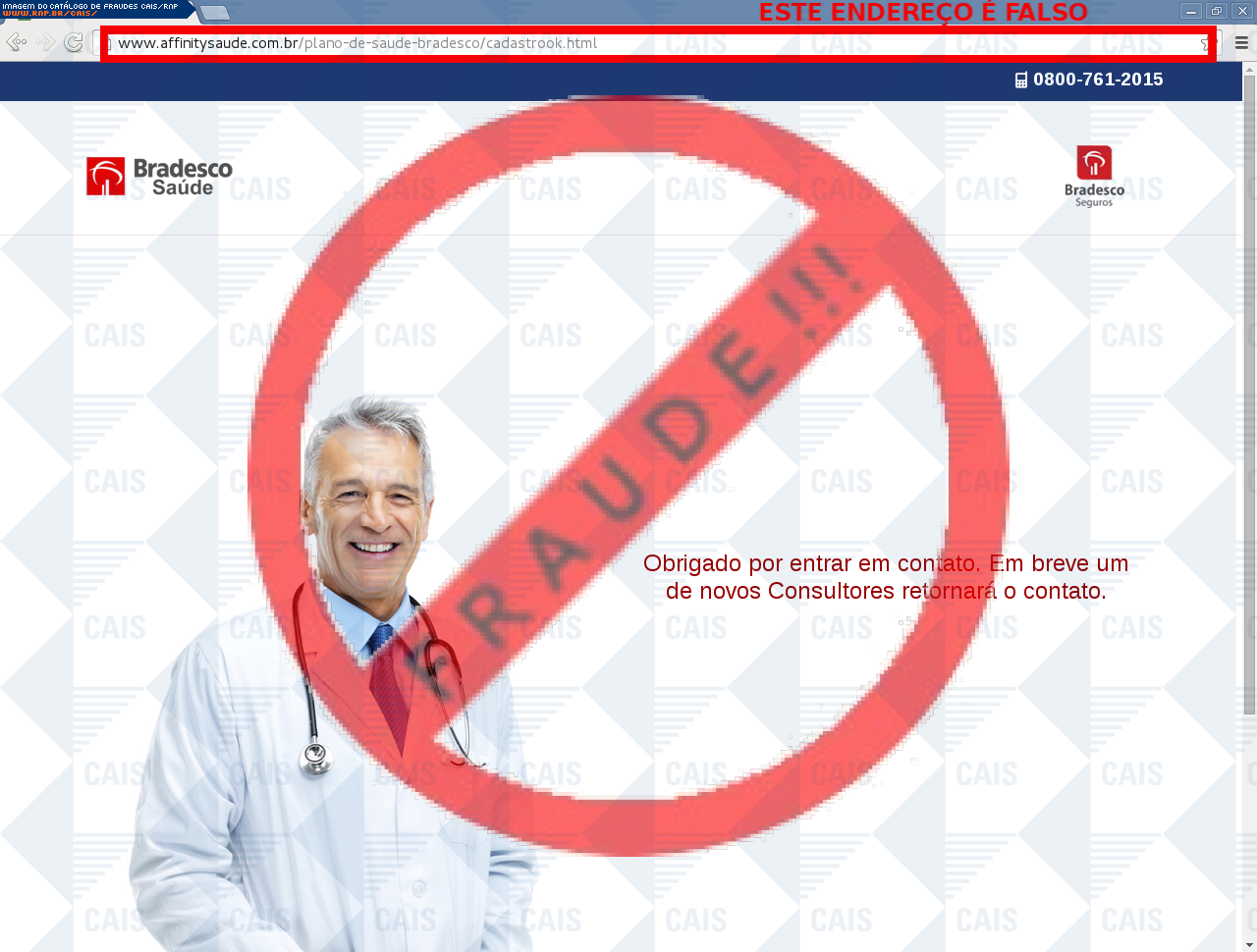 | comentário | vítima recebe um e-mail informando sobre o plano de saúde do banco Bradesco sendo necessário realizar um cadastro para recebimento de mais informações, no entanto a página é falsa destinada a roubar os dados do usuário. | |