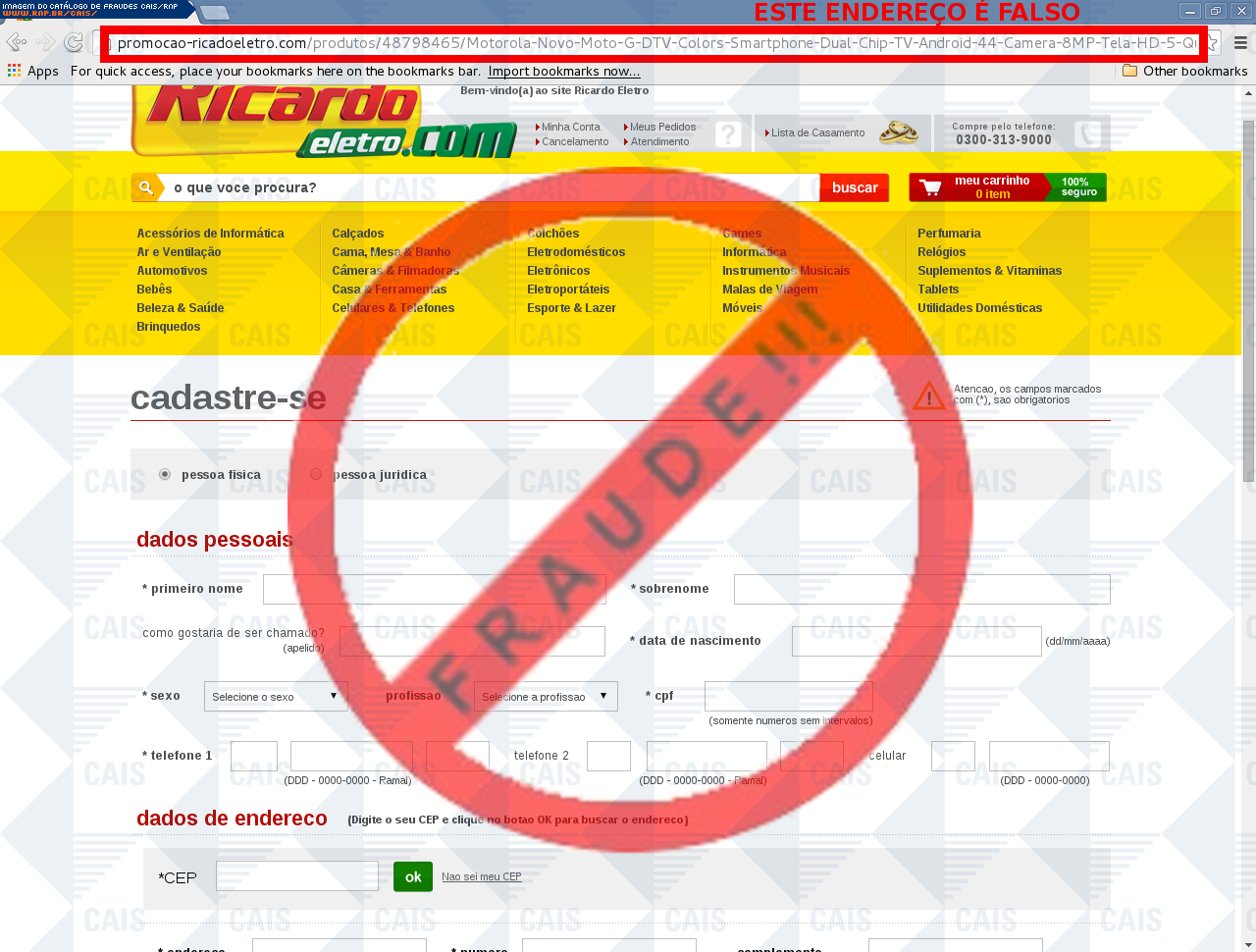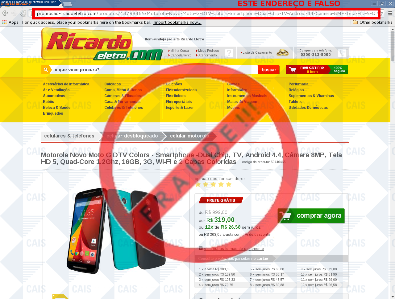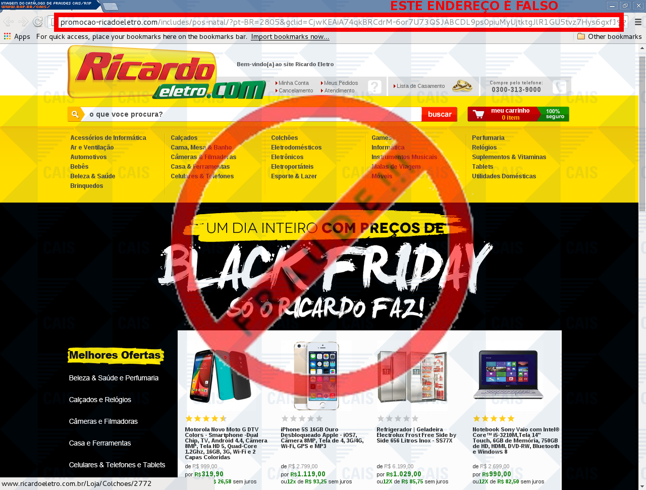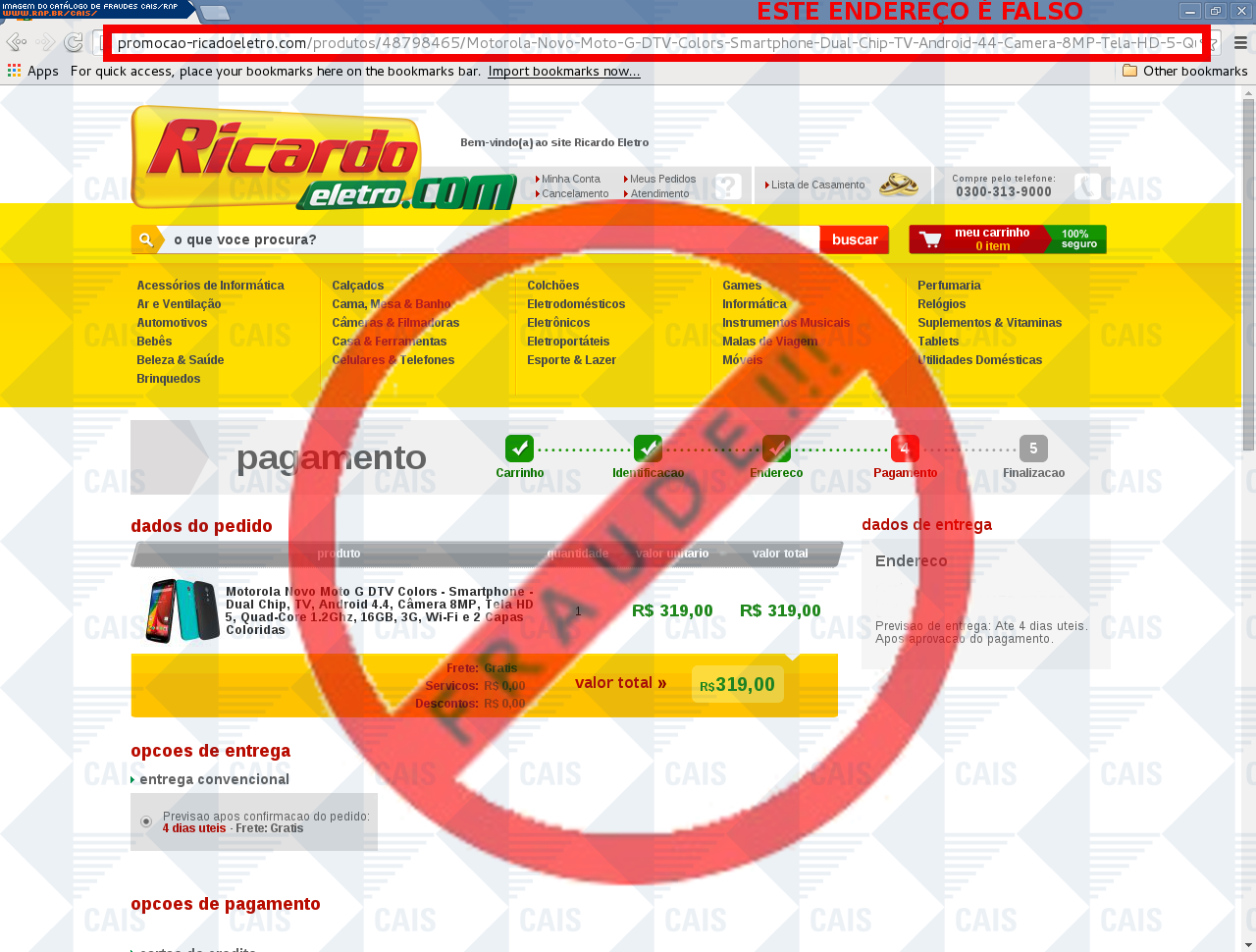 | comentário | A vítima recebe um e-mail informando sobre promoções no site de compra da Ricardo Eletro disponibilizando link de vários produtos em desconto, no entanto a página é falsa destinada a roubar as informações pessoais e do cartão do usuário. | |