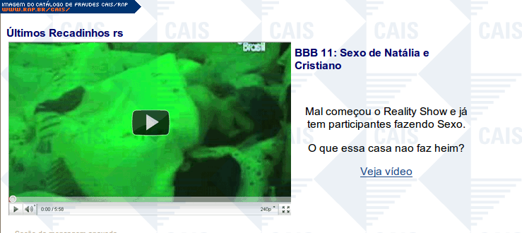 | assunto | BBB 11: Sexo de Natália e Cristiano | |