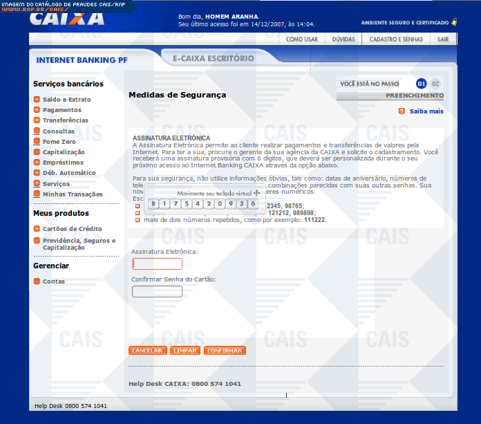 | assunto | RECADASTRO - Internet Banking Caixa | |