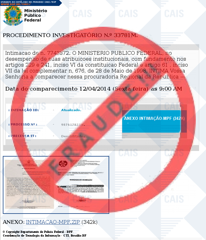 | tipo | FRAUDE - Intimação Ministério Público Federal | ID: 27996 |