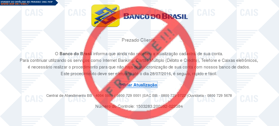 | tipo | FRAUDE - Banco do Brasil atualização | ID: 48916 |