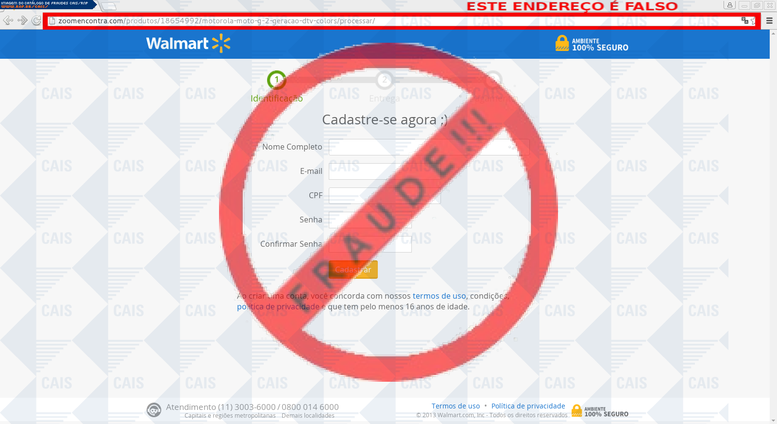 | comentário | A vítima recebe uma mensagem contendo promoções no site de compras Walmart estando o link disponibilizado, no entanto a página é falsa destinada a roubar as informações do usuário. | |