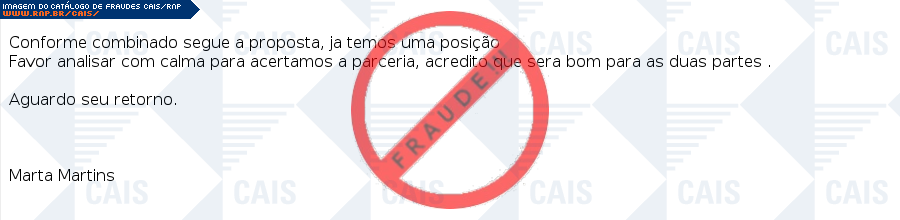 | comentário | A vítima recebe um email com uma suposta proposta em anexo. Contudo, o anexo leva ao download de um malware de nome Artemis!29F96349736A. | |