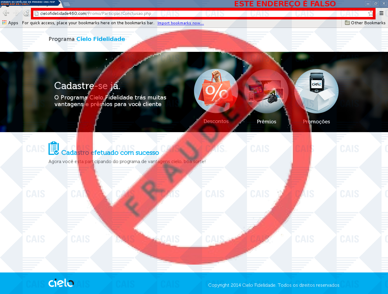 | comentário | A vítima recebe um e-mail informando sobre os benefícios do programa de fidelidade disponibilizando o link para cadastro, no entanto a página é falsa criada para roubar as informações do cartão da vítima. | |