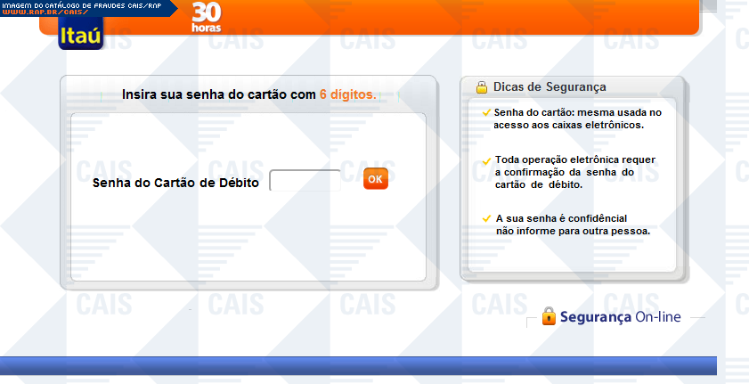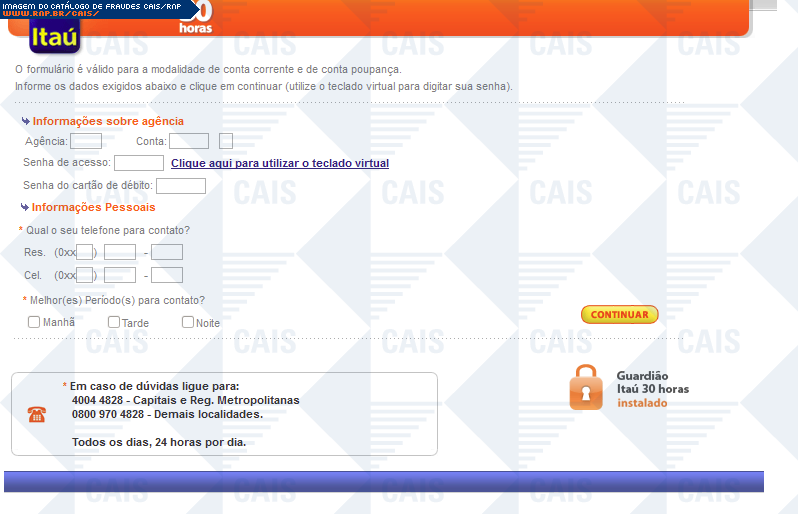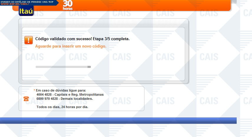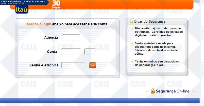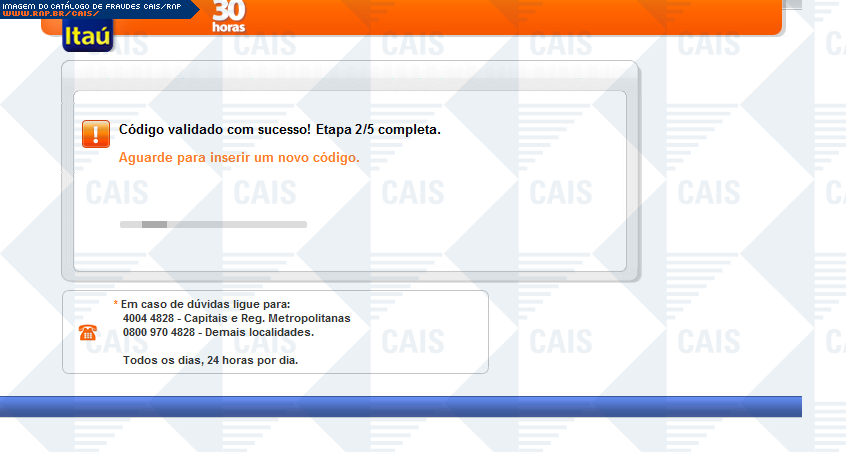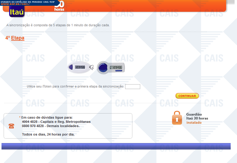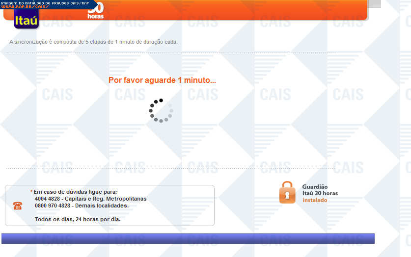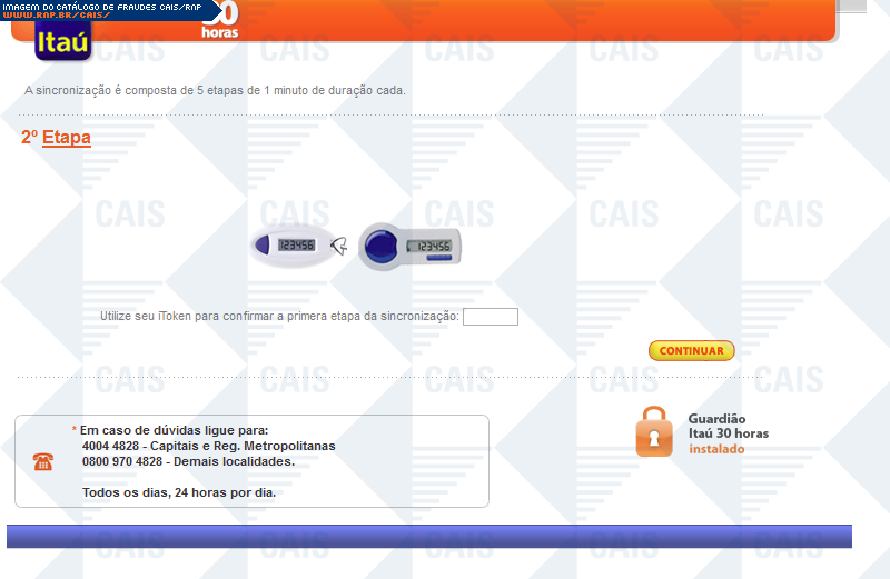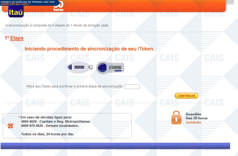 | comentário | A fraude ameaça suspensão de serviços Itaú, caso o dispositivo itoken não seja sincronizado. Há um link para a suposta sincronização, porém este leva á um falsa página do itaú, na qual dados confidenciais são solicitados. | |