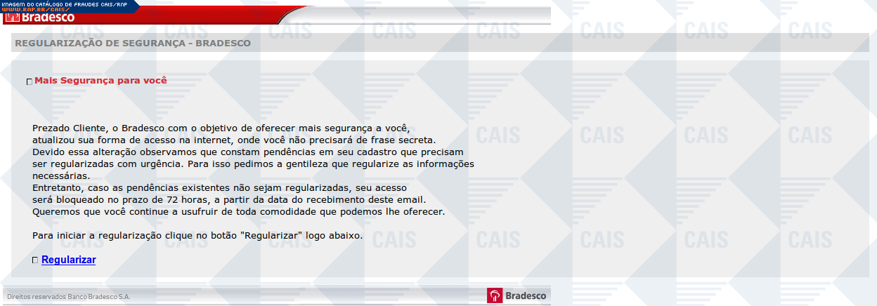 | tipo | Regularização de Segurança Bradesco | ID: 3686 |