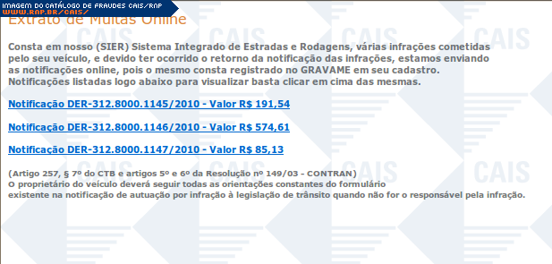 comentário Suposta notificação do Sistema Integrado de Estradas e Rodagens sobre existência de várias infrações de trânsito cometidas pelo veículo da vítima. A mensagem é vaga e não fornece nenhum tipo de informação sobre a vítima nem sobre o veículo. Os links contidos... (leia mais)