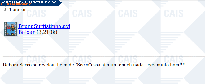 | arquivo malicioso | BrunaSurfistinha.avi___de___www.slim.tv.com | |
