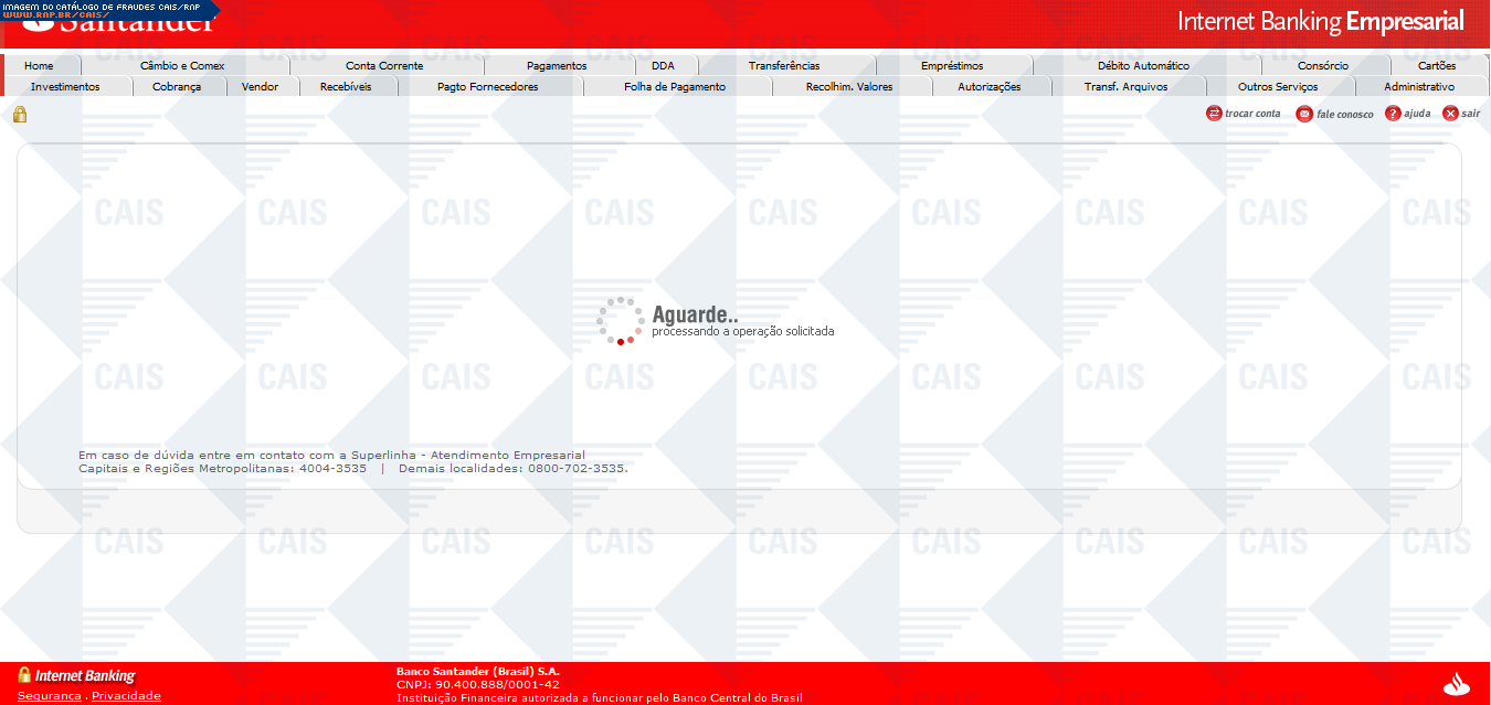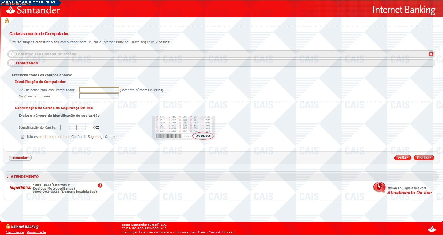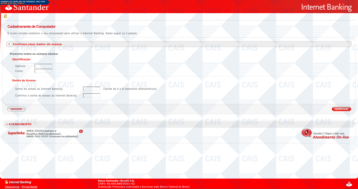 | tipo | Cadastramento de computadores Santander | ID: 14216 |