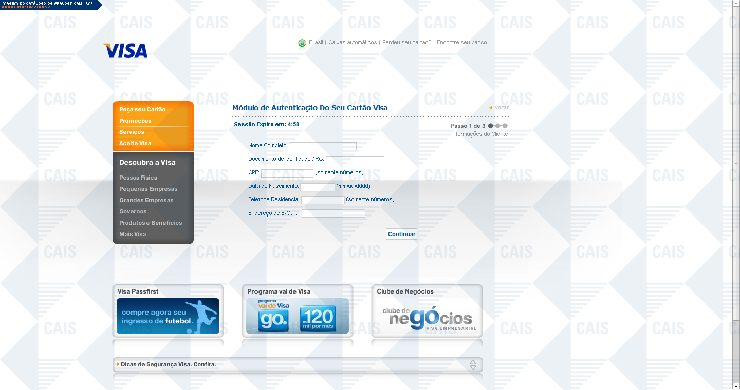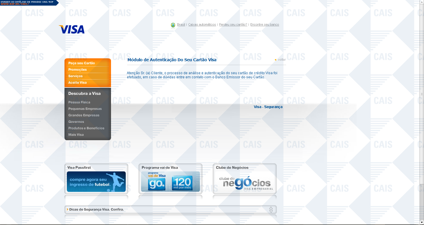 | tipo | Autenticação de dados Visa | ID: 14261 |