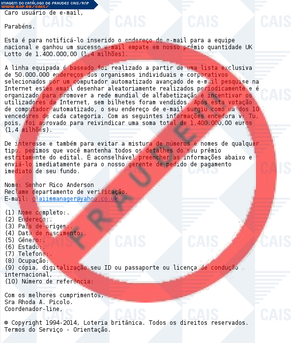 | assunto | Seu endereço de e-mail que você ganhou 1,400.000.00 Euros. | |