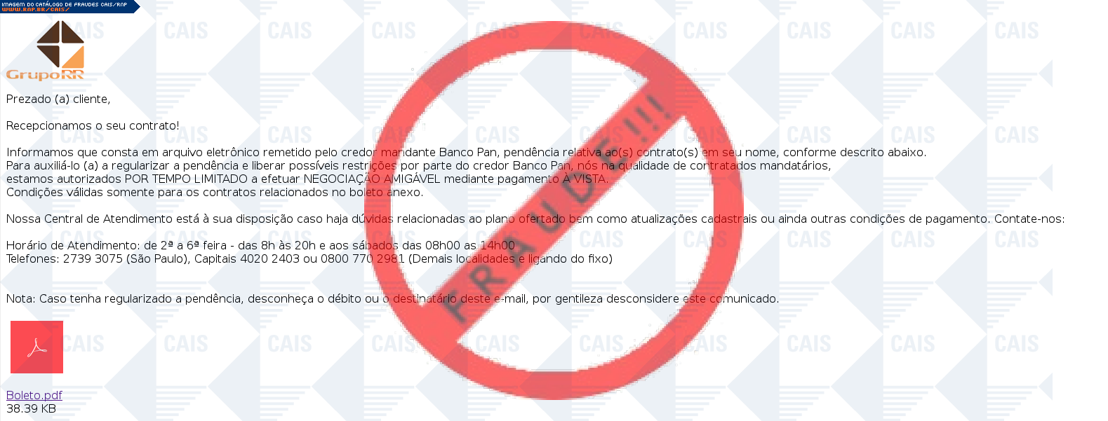 | tipo | FRAUDE - Boleto refrente a contrato | ID: 46591 |
