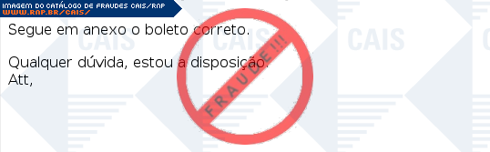 | comentário | A vítima recebe um email dizendo que há um boleto em anexo, entretanto, o anexo é na verdade um malware de nome Trojan.VBS.Dnschanger. | |