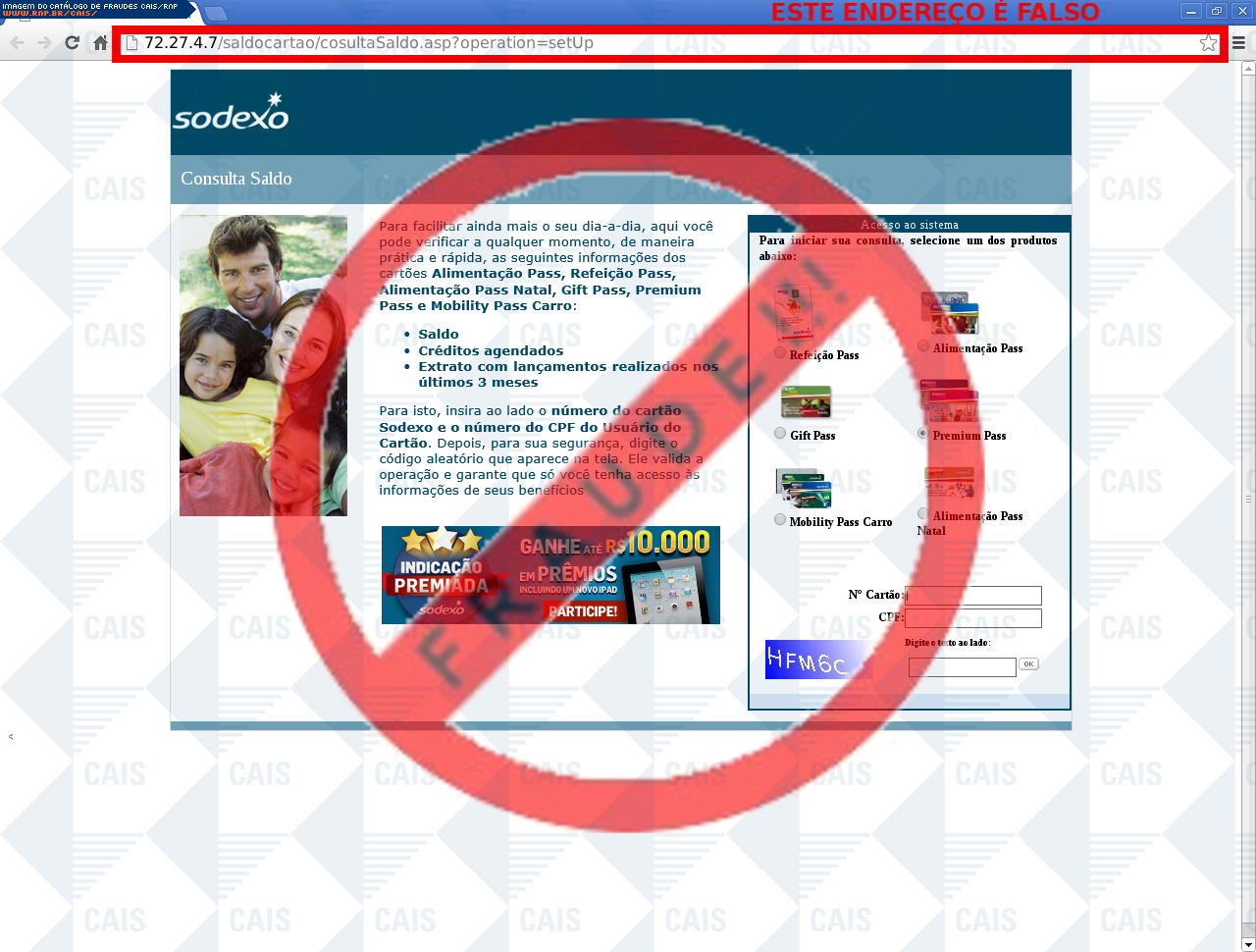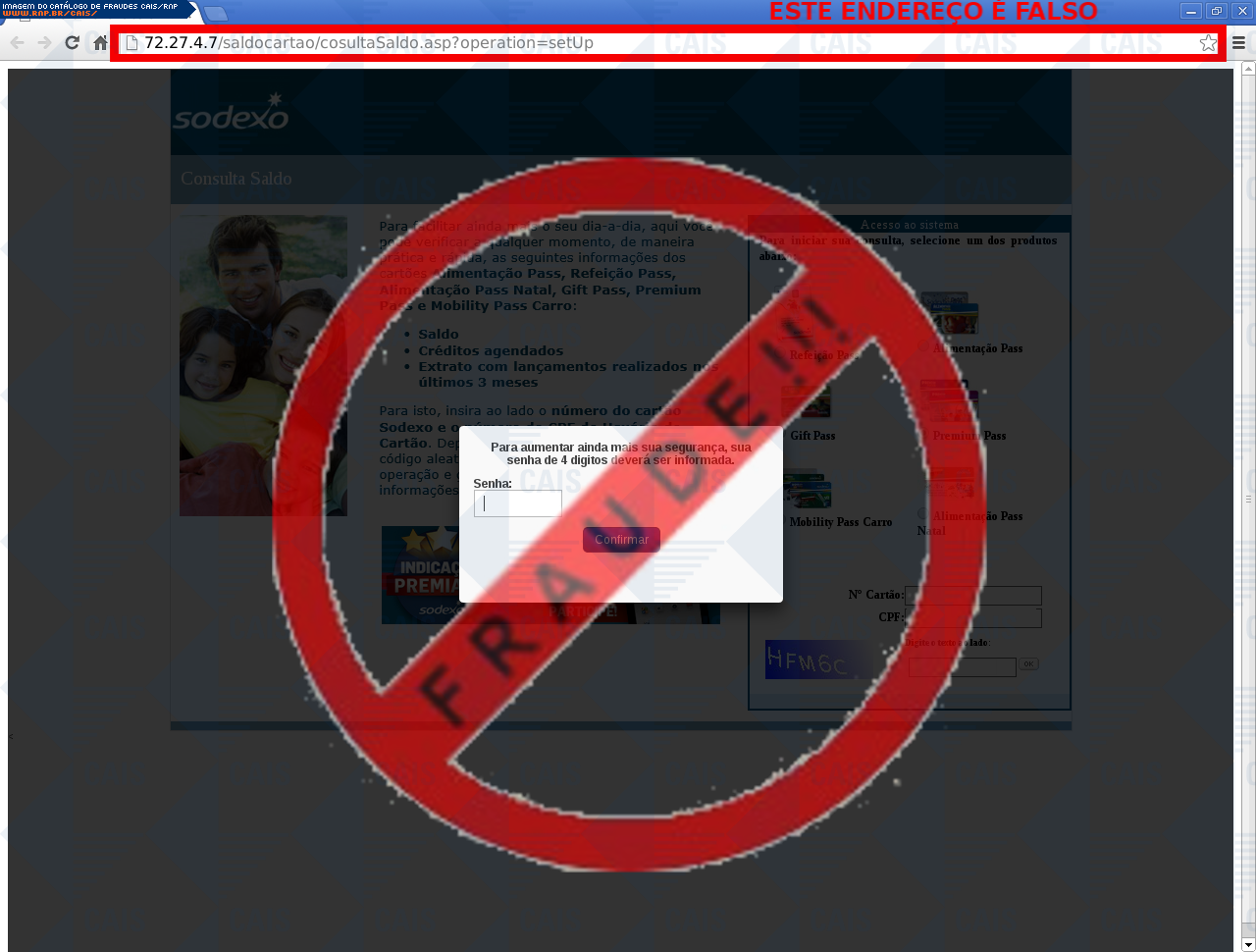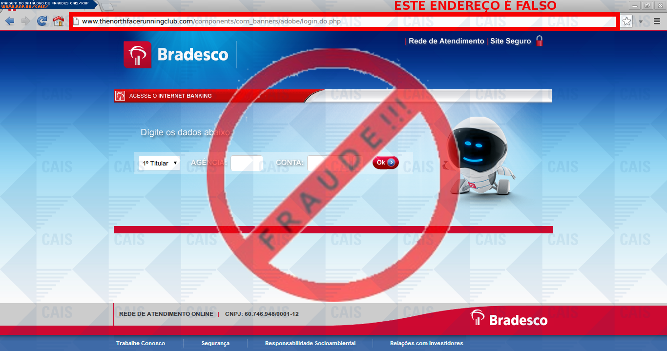 Esta página tem função informativa e educativa. Exibe uma coleção de imagens de phishing scam (fraudes eletrônicas) ou malware (código malicioso) veiculados por meio de spam (e-mail não-solicitado). Trata-se de conteúdo exemplificativo, não exaustivo, uma vez que não é possível contemplar todos os casos de fraudes existentes. Assim, caso você tenha conhecimento de um exemplar que não esteja aqui presente, isto não significa que não seja válido ou real. Inclusive incentivamos que você o envie para análise do CAIS para que, se for o caso, passe a integrar o nosso acervo.