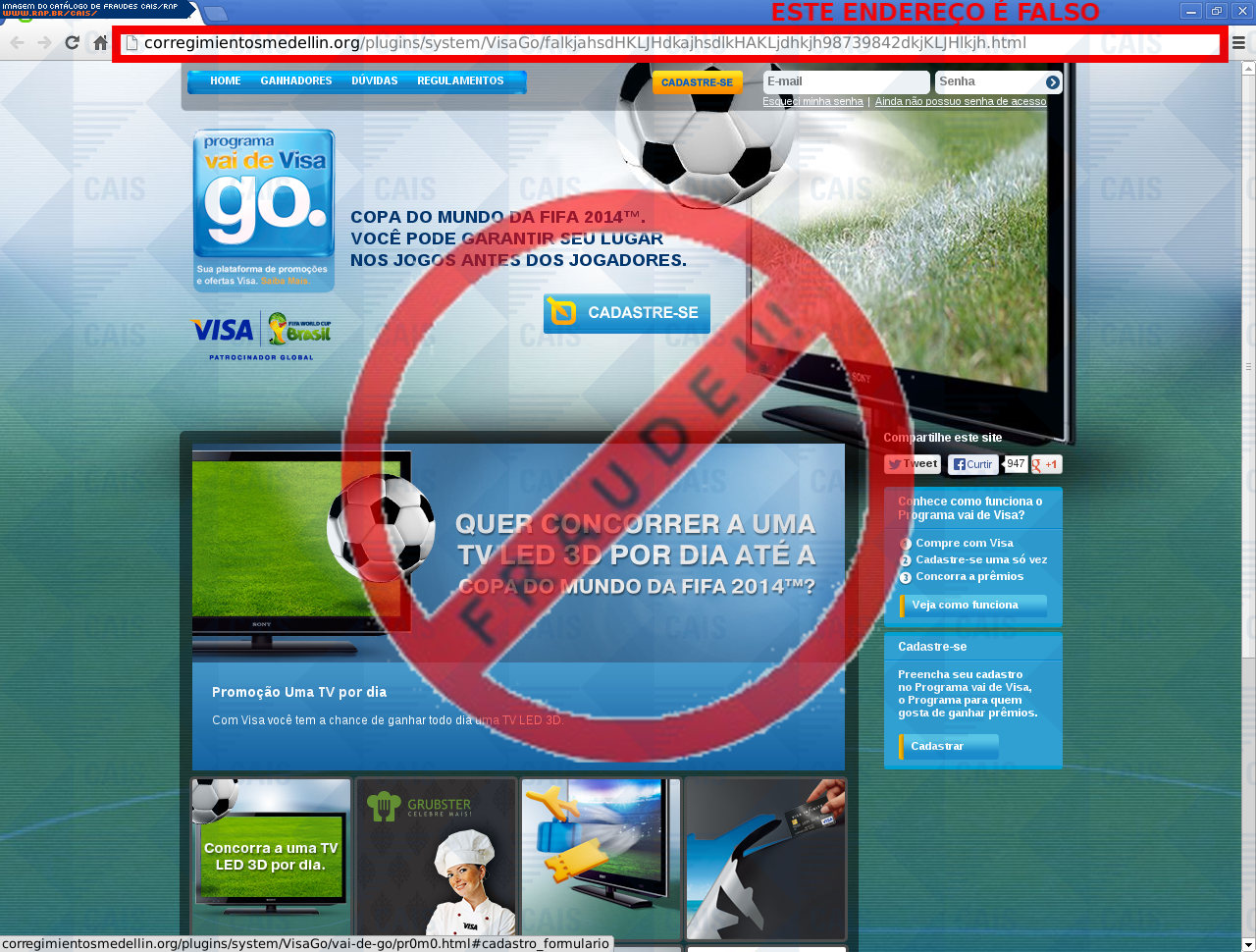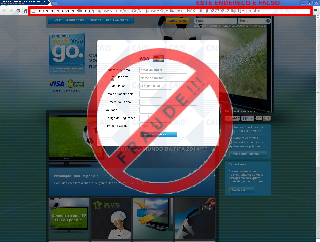 | comentário | O usuário é informado sobre uma promoção de uma bandeira de cartões de credito, mas quando o usuário acessa o site e tenta cadastrar-se é levado ao site falso que solicita dados sensíveis do usuário. | |
