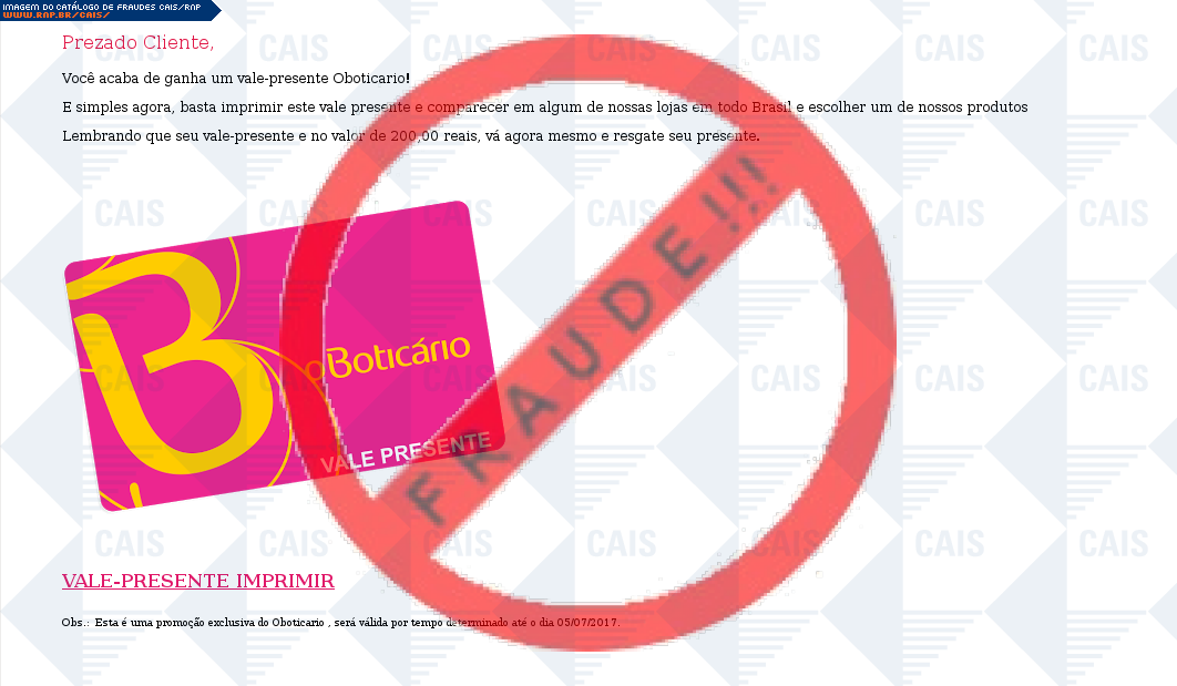 | tipo | FRAUDE - O Boticário vale-presente | ID: 41001 |