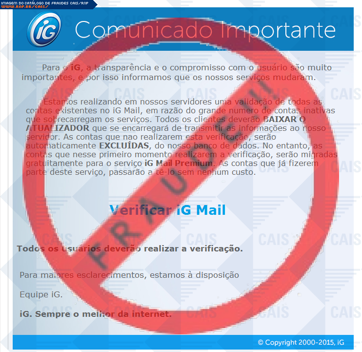 | tipo | FRAUDE - IG Mail atualização | ID: 41026 |