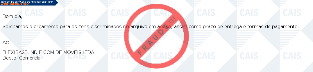 | comentário | O usuário recebe uma mensagem contendo um orçamento disponível em anexo, no entanto o arquivo originado é malicioso criado para roubar informações da vítima e instalar outros arquivos fraudulentos com o nome de Trojan.Downloader.VBS.Agent.GB. | |