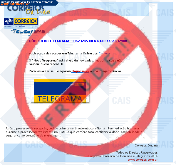 | tipo | FRAUDE - Correios Telegrama | ID: 32456 |