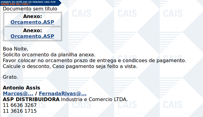 | arquivo malicioso | Orcamento.LTDA.zip | |
