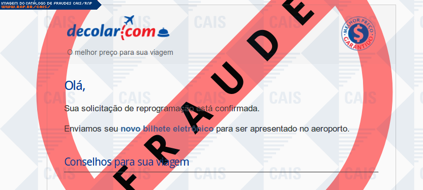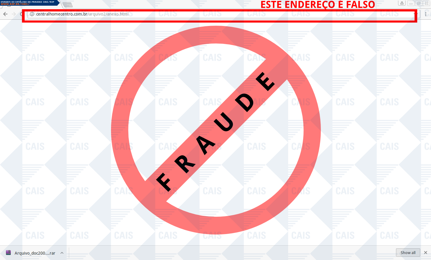 Esta página tem função informativa e educativa. Exibe uma coleção de imagens de phishing scam (fraudes eletrônicas) ou malware (código malicioso) veiculados por meio de spam (e-mail não-solicitado). Trata-se de conteúdo exemplificativo, não exaustivo, uma vez que não é possível contemplar todos os casos de fraudes existentes. Assim, caso você tenha conhecimento de um exemplar que não esteja aqui presente, isto não significa que não seja válido ou real. Inclusive incentivamos que você o envie para análise do CAIS para que, se for o caso, passe a integrar o nosso acervo.