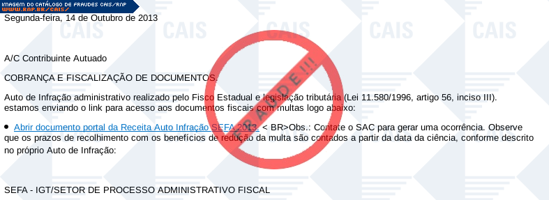 | arquivo malicioso | SEFA-Visualizar-AI-Documento-2013-PDF-.com | |