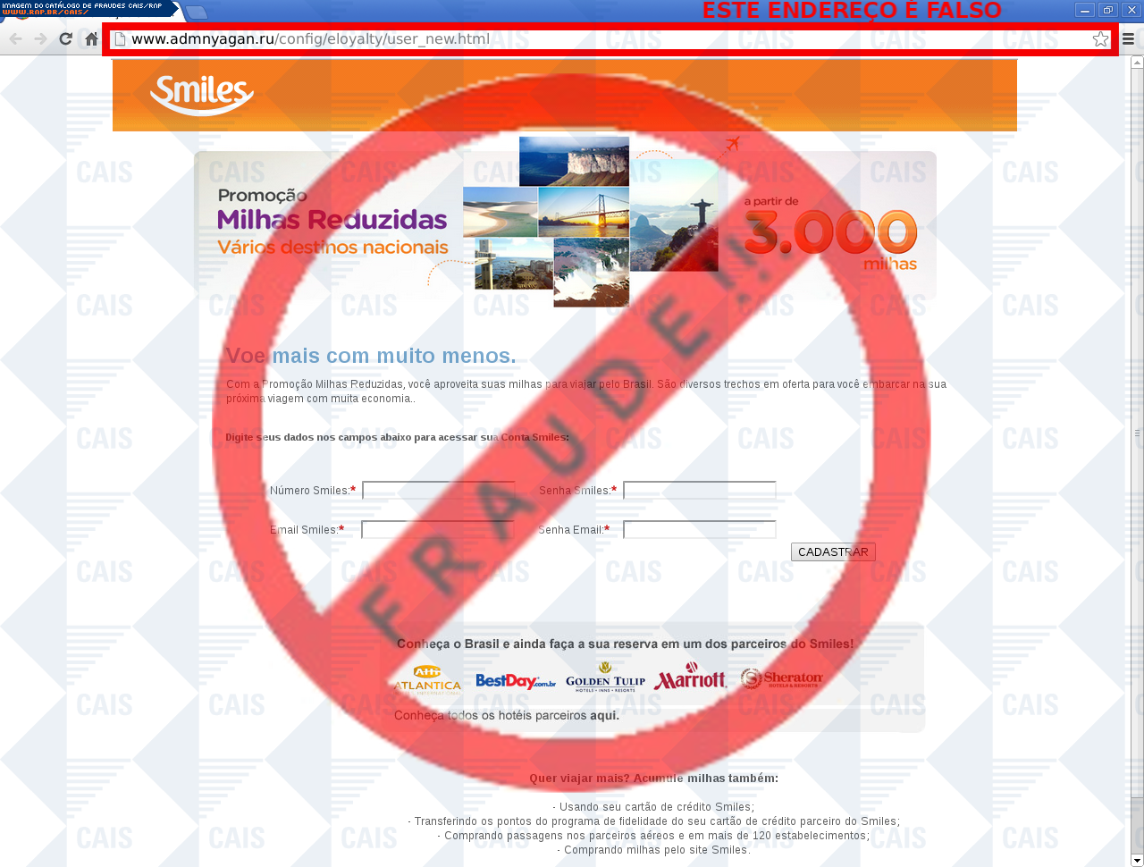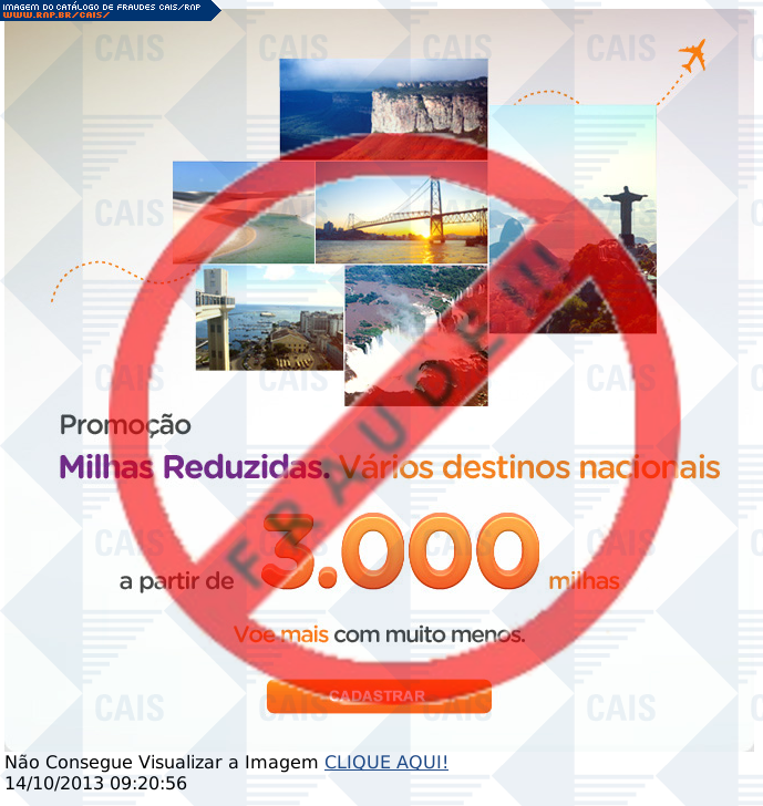 | comentário | O usuário recebe um e-mail sobre uma suposta promoção de um programa de milhagens aéreas, mas ao acessar o link de cadastro é levado a um site falso. | |