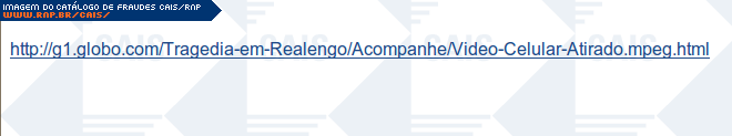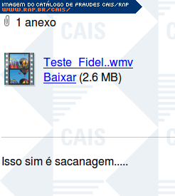 Esta página tem função informativa e educativa. Exibe uma coleção de imagens de phishing scam (fraudes eletrônicas) ou malware (código malicioso) veiculados por meio de spam (e-mail não-solicitado). Trata-se de conteúdo exemplificativo, não exaustivo, uma vez que não é possível contemplar todos os casos de fraudes existentes. Assim, caso você tenha conhecimento de um exemplar que não esteja aqui presente, isto não significa que não seja válido ou real. Inclusive incentivamos que você o envie para análise do CAIS para que, se for o caso, passe a integrar o nosso acervo.