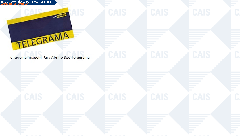 | comentário | A mensagem contém um link para um suposto telegrama. O link leva a ao arquivo malicioso que foi identificado como Virus.BAT.Agent (Ikarus). | |